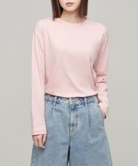 우먼즈 릴렉스드 크루 넥 긴소매 티셔츠 [인디언 핑크]