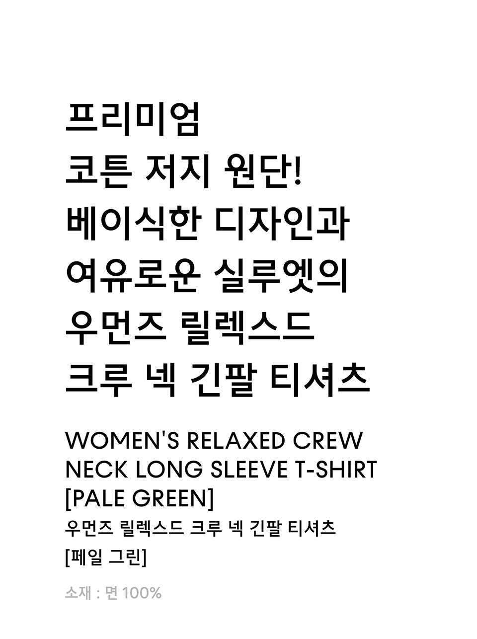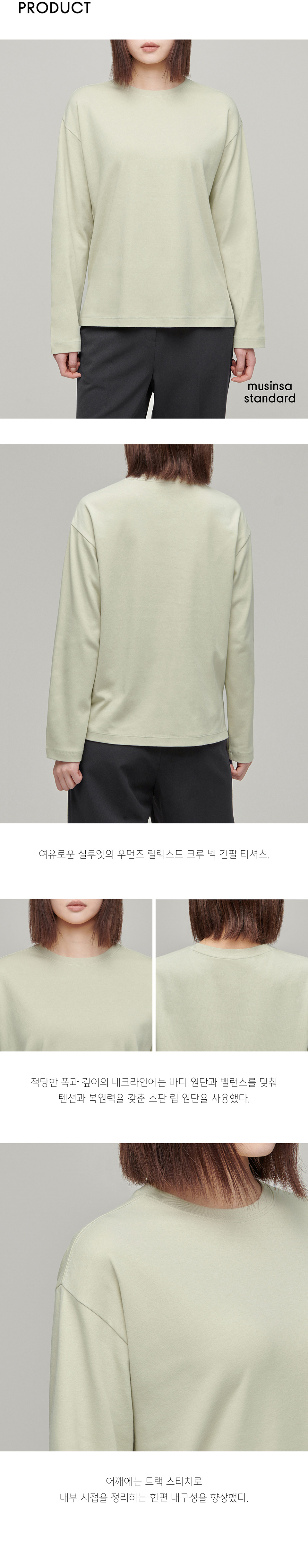 우먼즈 릴렉스드 크루 넥 긴소매 티셔츠 [페일 그린]