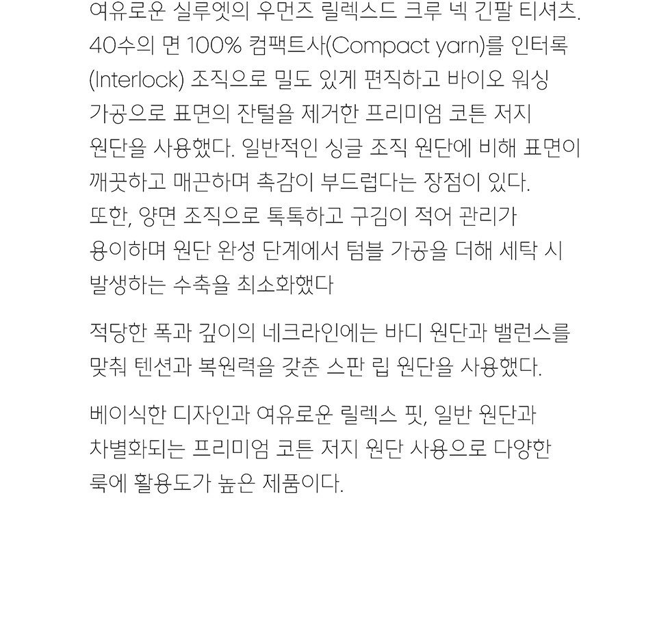우먼즈 릴렉스드 크루 넥 긴소매 티셔츠 2팩