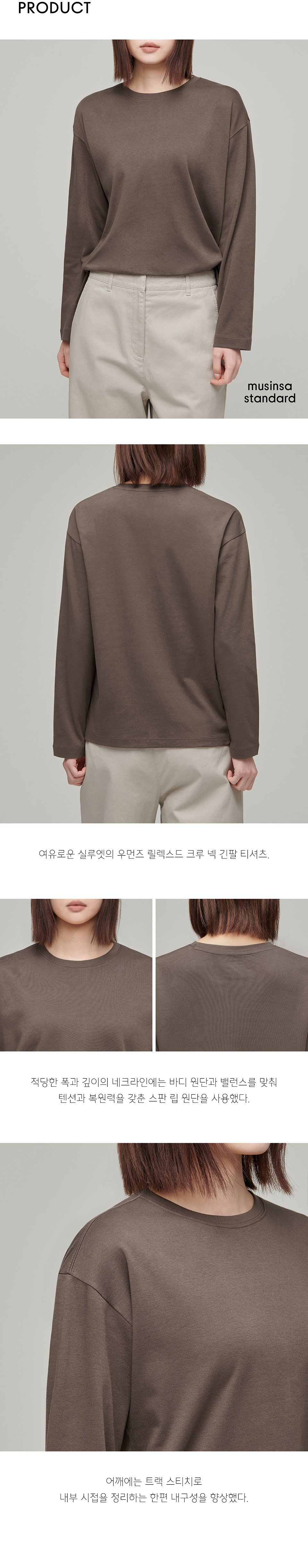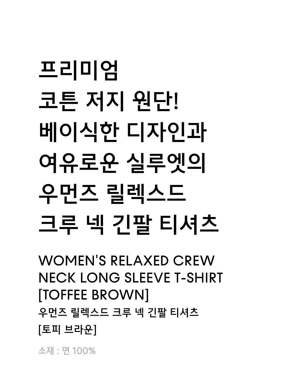 우먼즈 릴렉스드 크루 넥 긴소매 티셔츠 [토피 브라운]