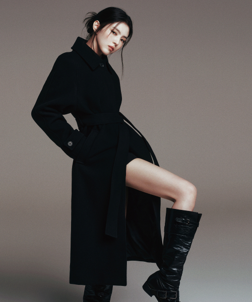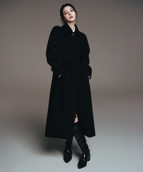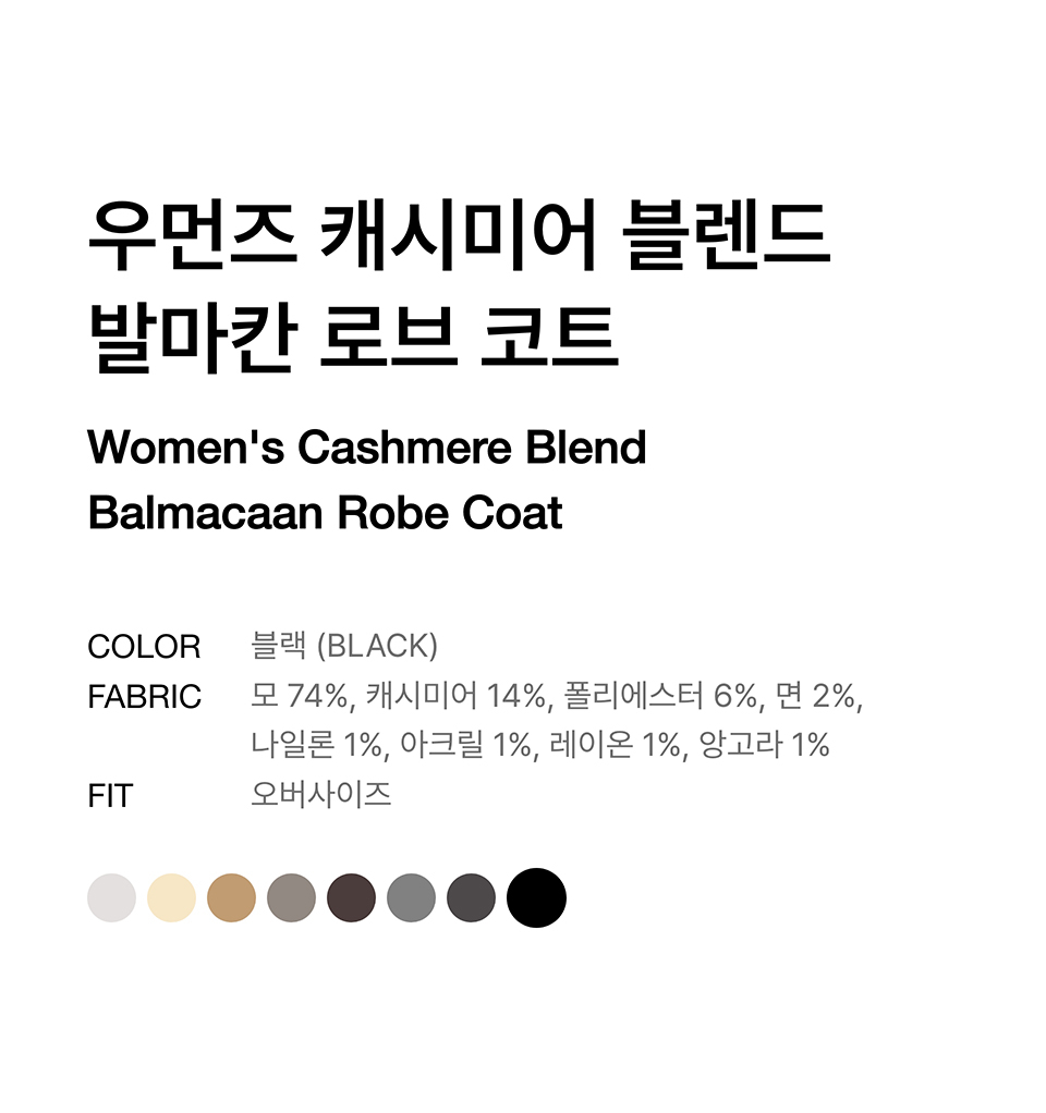 우먼즈 캐시미어 블렌드 발마칸 로브 코트 [블랙]