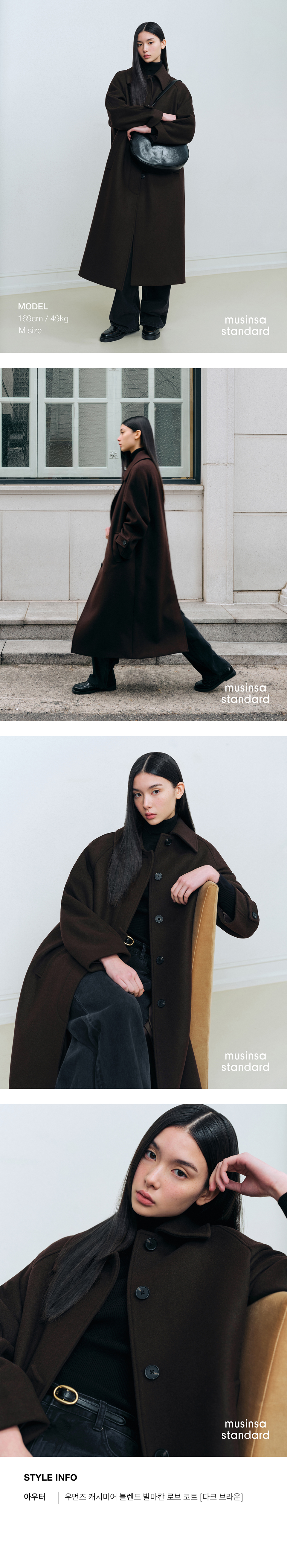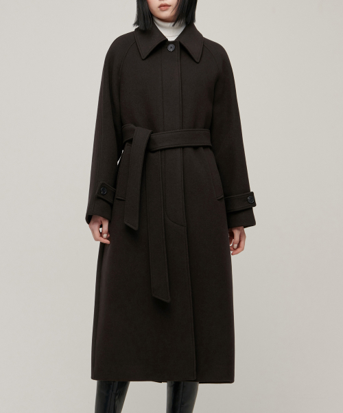우먼즈 캐시미어 블렌드 발마칸 로브 코트 [다크 브라운]