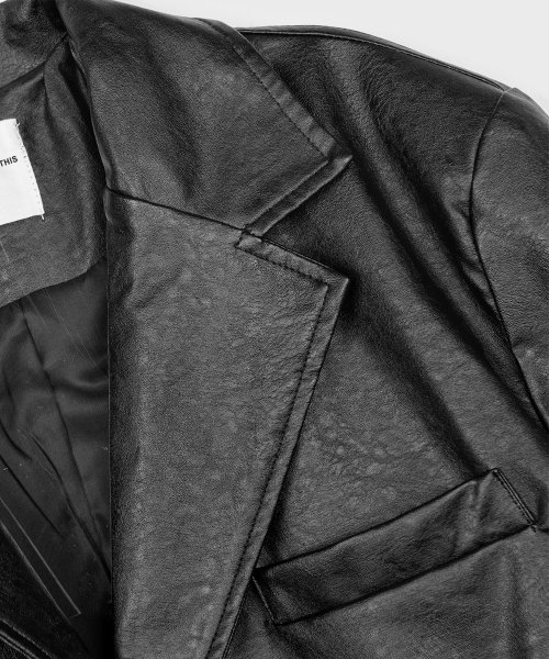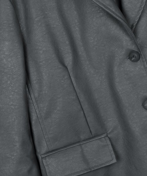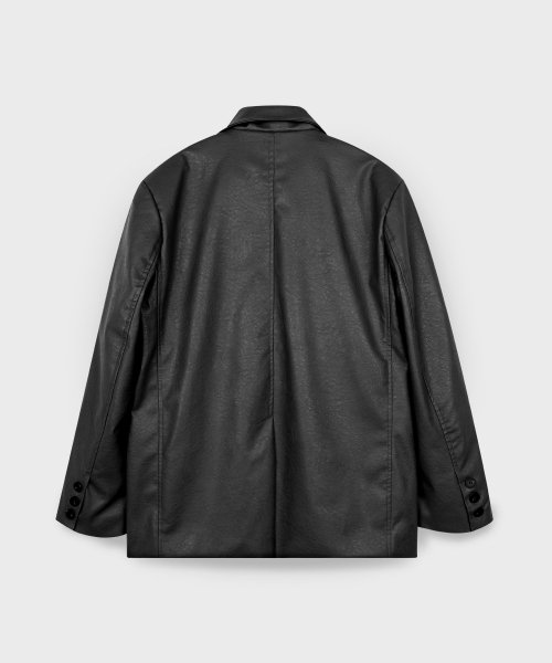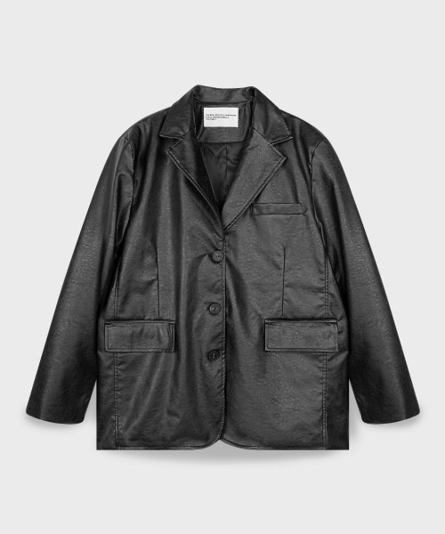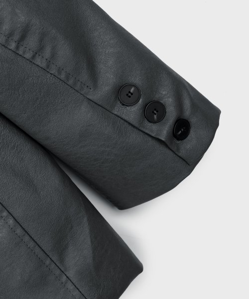 비건 크랙 오버핏 싱글 버튼 블레이저 레더 자켓 [그레이]