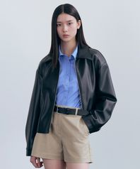 우먼즈 신세틱 레더 오버사이즈 싱글 재킷 [블랙]