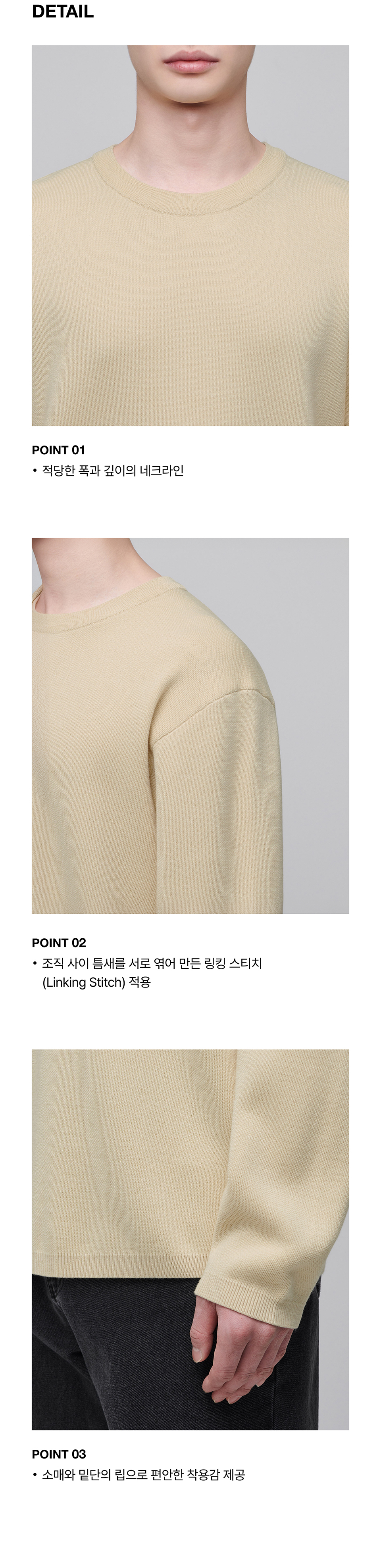 미니멀 크루 넥 니트 [크림]