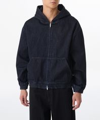 오버사이즈 데님 후디드 집업 재킷 [딥 인디고]