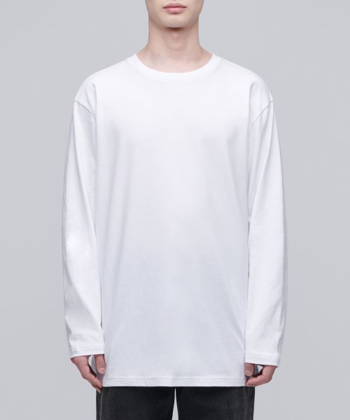 레이어드 크루 넥 긴소매 티셔츠_일반 기장 [화이트]