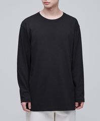 레이어드 크루 넥 긴소매 티셔츠_일반 기장 [블랙]