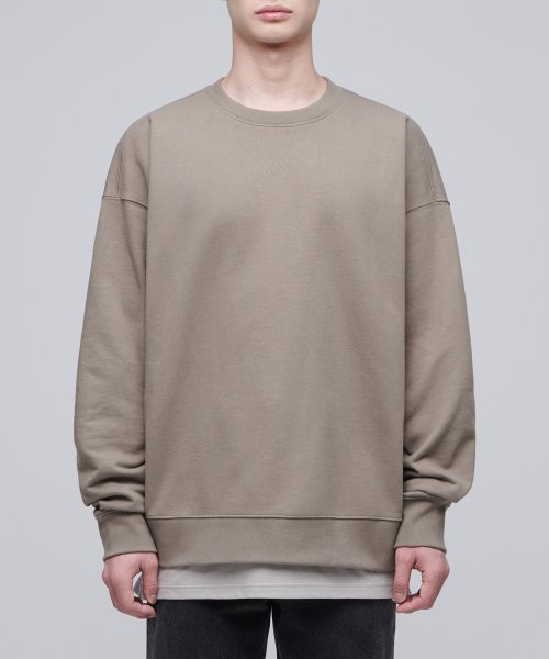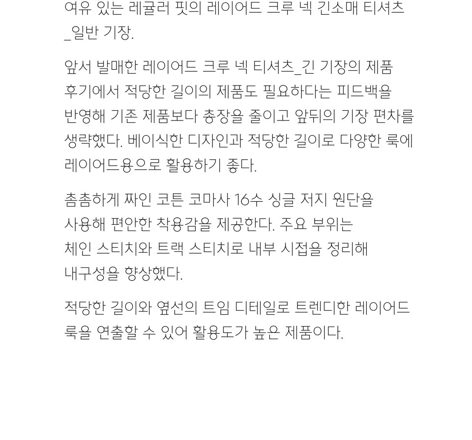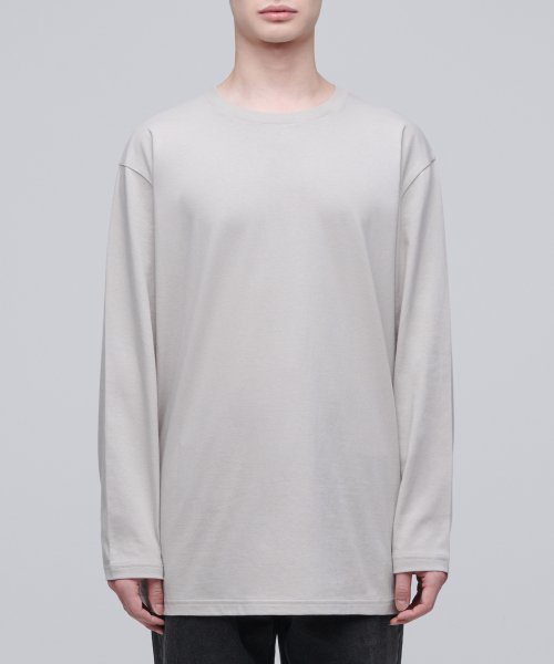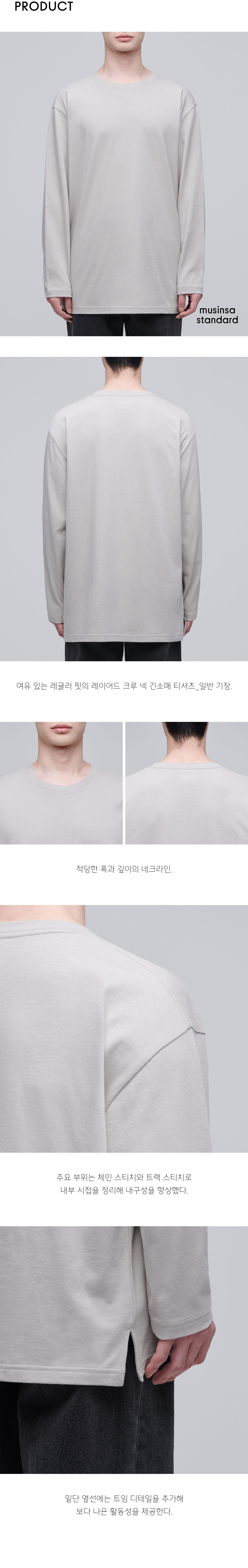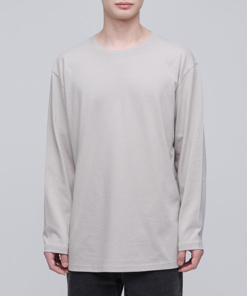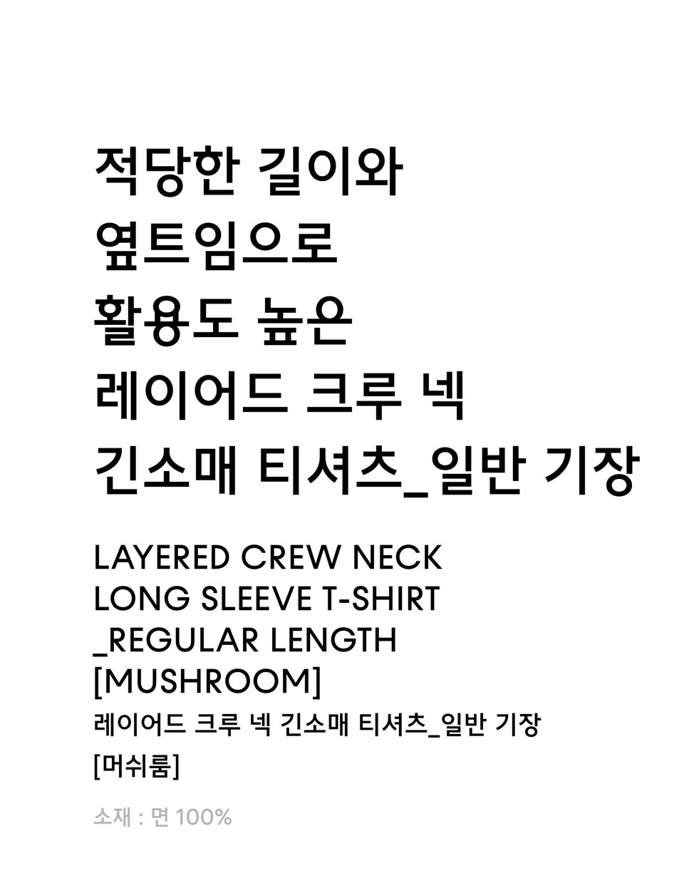 레이어드 크루 넥 긴소매 티셔츠_일반 기장 [머쉬룸]
