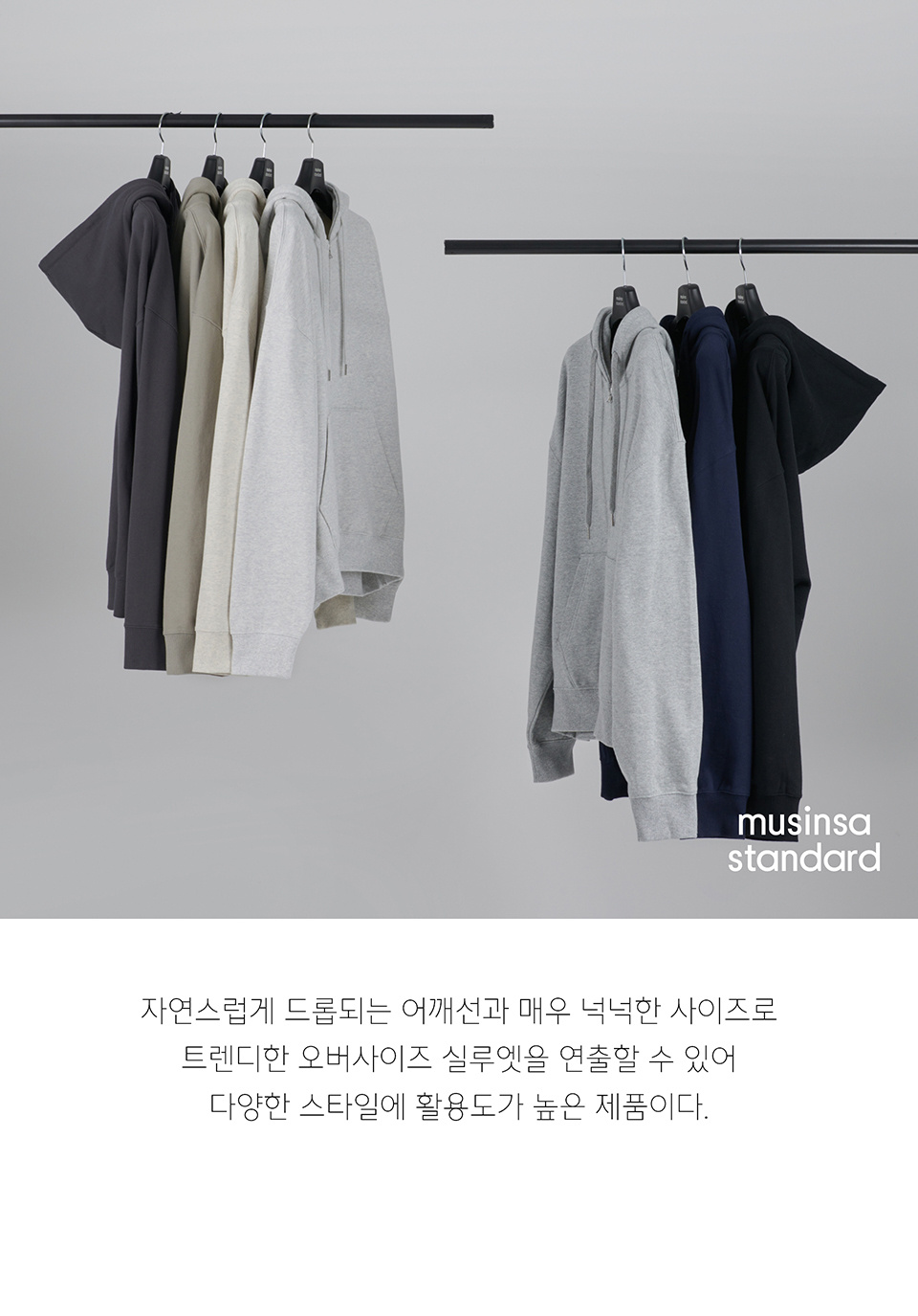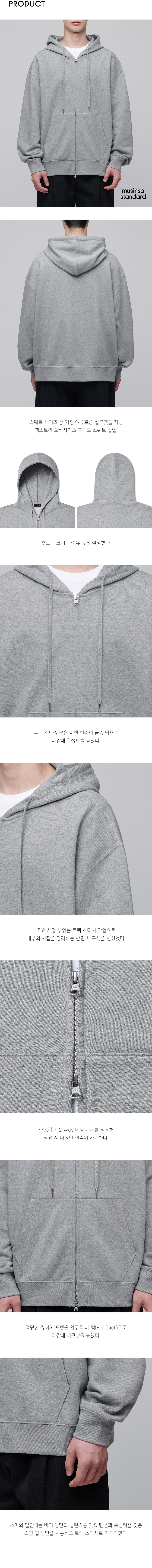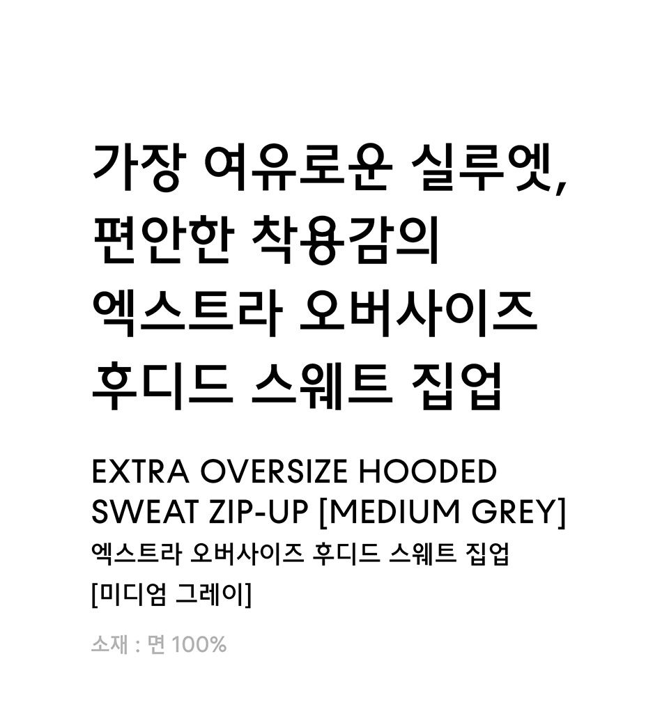 엑스트라 오버사이즈 후디드 스웨트 집업 [미디엄 그레이]