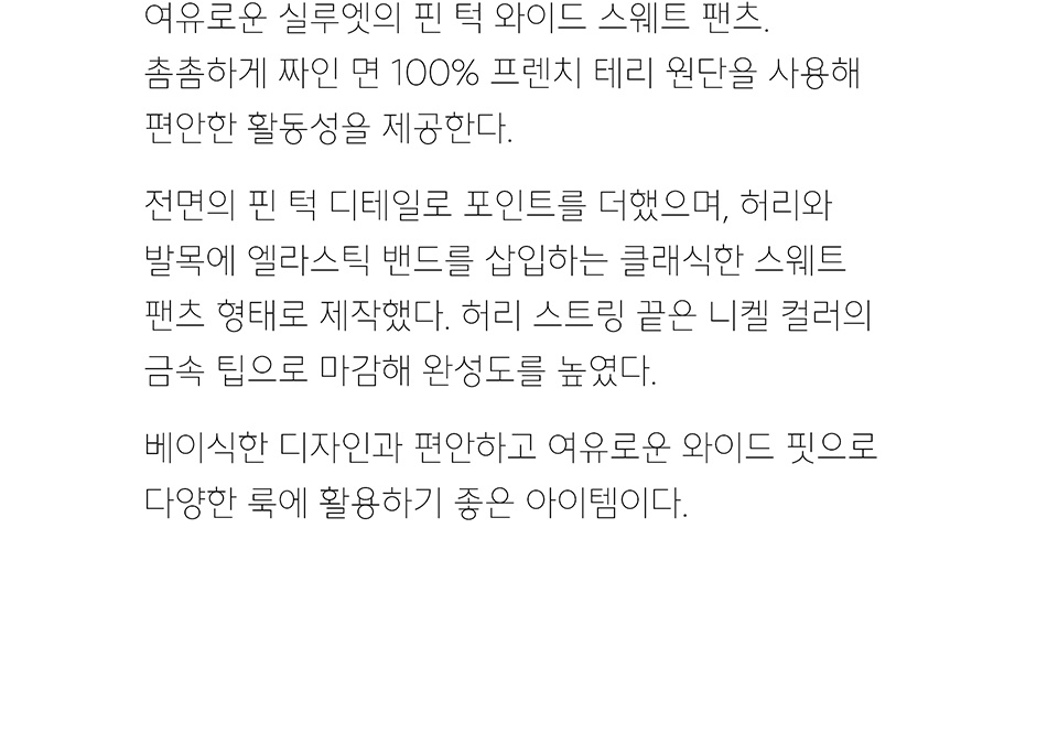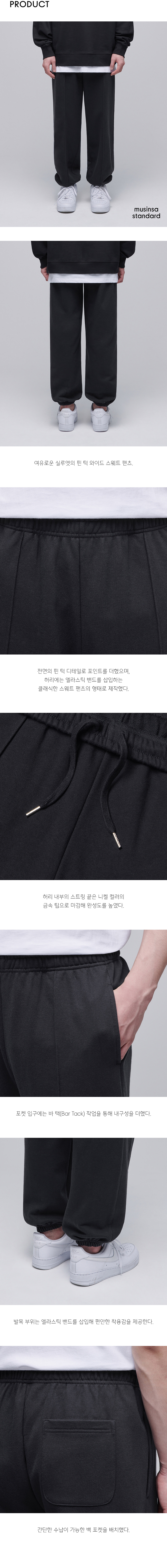 핀 턱 와이드 스웨트 팬츠 [블랙]