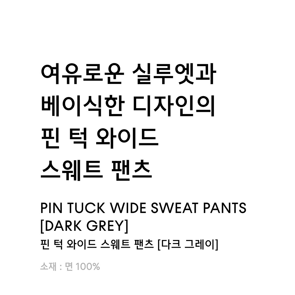 핀 턱 와이드 스웨트 팬츠 [다크 그레이]