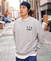 바스켓볼 아크 스몰 로고 맨투맨 그레이