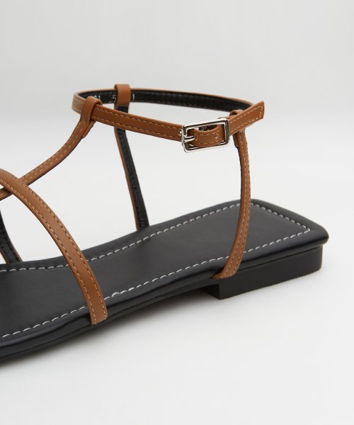 메리제인 세미 스퀘어라인 플랫 슈즈 - 블랙