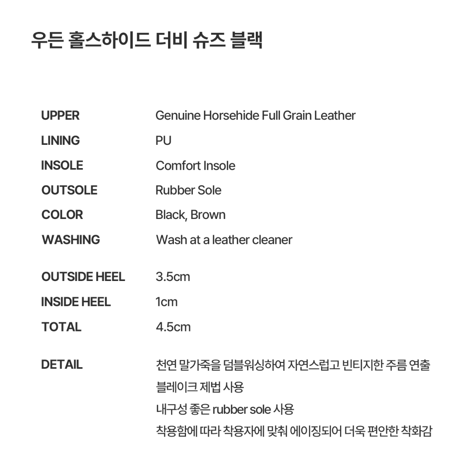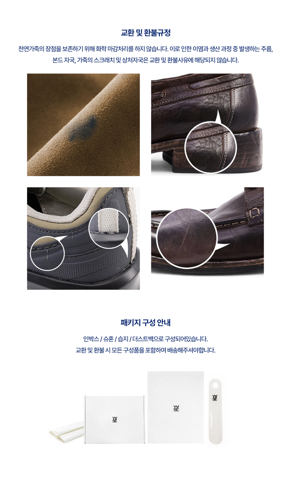 - 사이즈 확인시 동봉된 슈혼 사용을 권장드립니다. 사이즈 확인 과정 제품 하자( 가죽의 손상, 과도한 시착으로 인한 주름) 발생 시 교환 및 환불이 불가합니다.