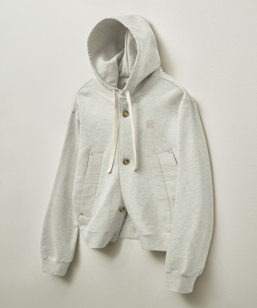 테오 코튼 올 데이 후드 집업 멜란지 아이보리