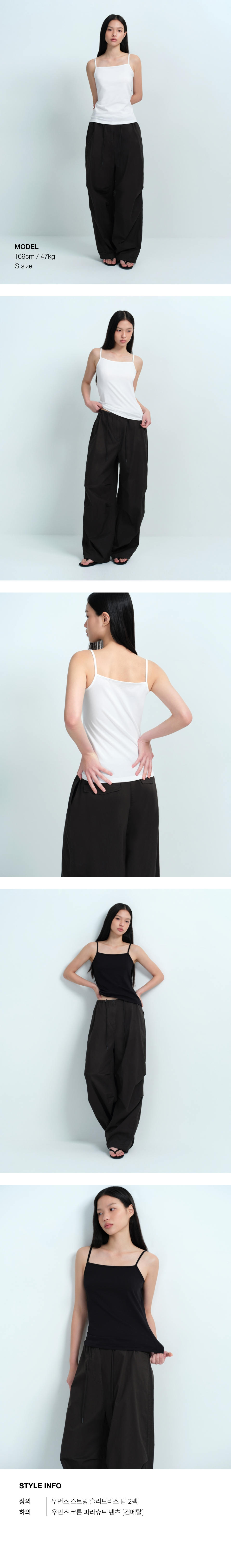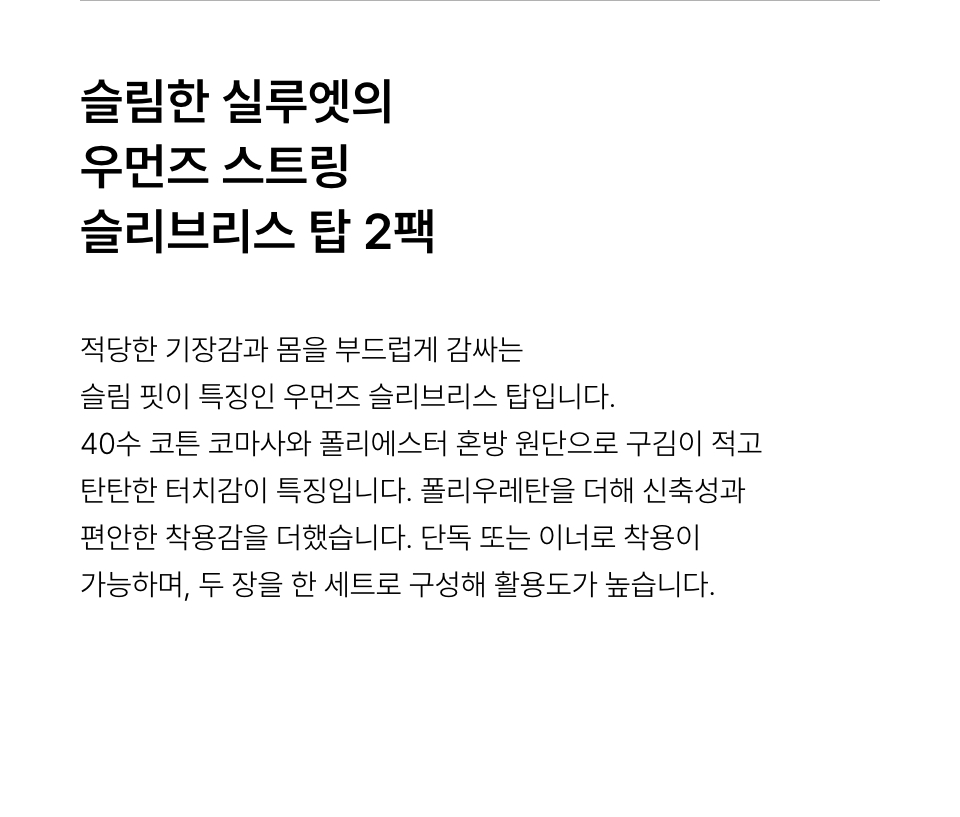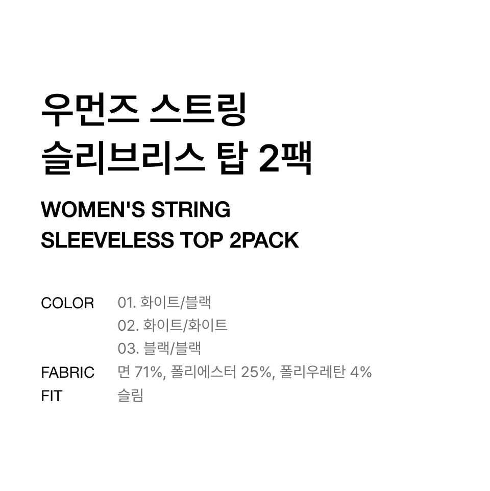 우먼즈 슬림 스트링 슬리브리스 탑 2팩