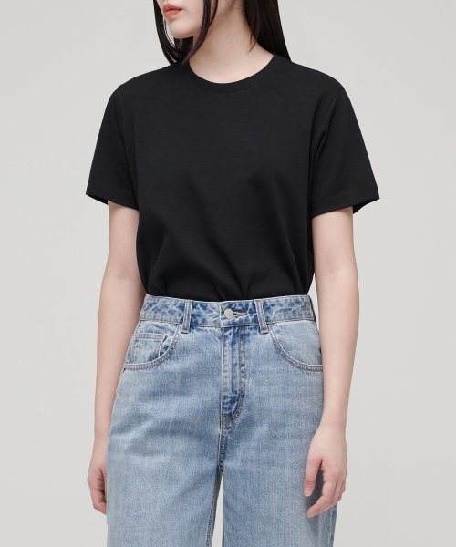 우먼즈 베이식 크루 넥 티셔츠 [멜란지 라이트 그레이]
