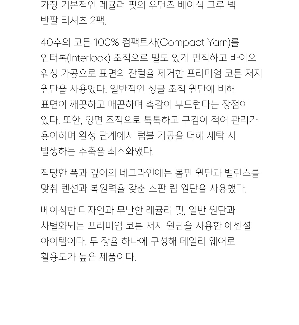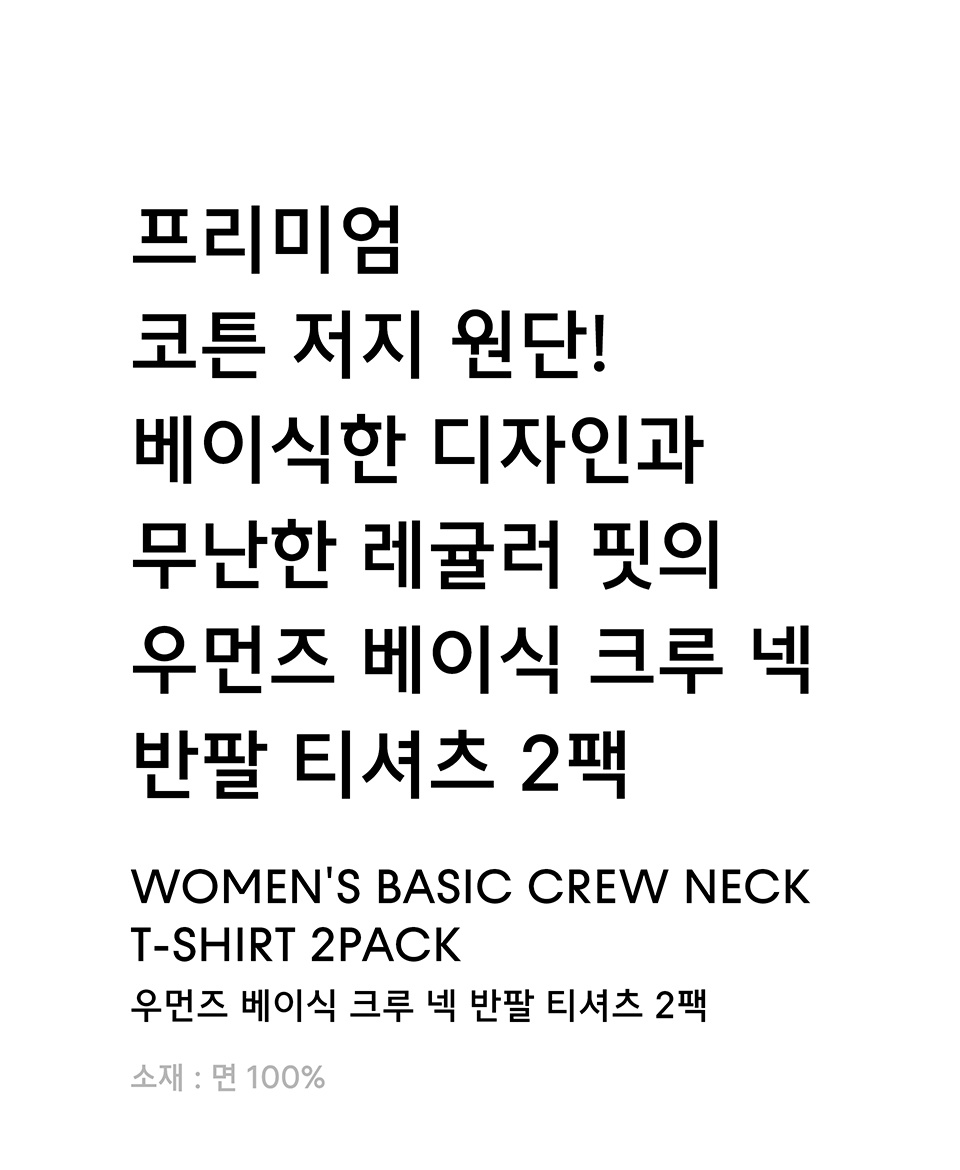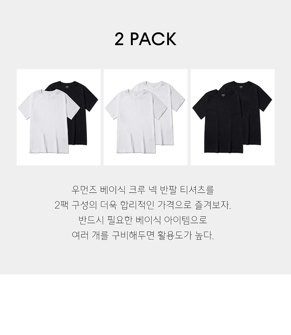 우먼즈 베이식 크루 넥 티셔츠 2팩