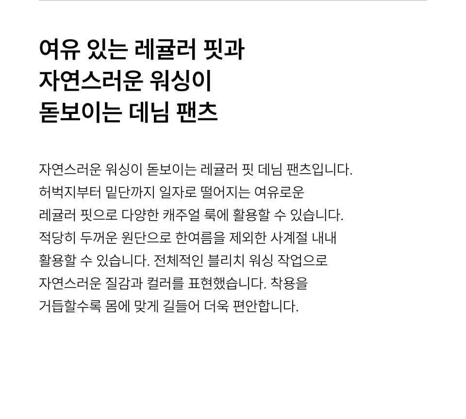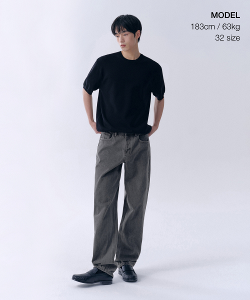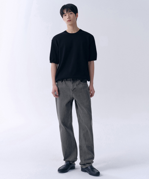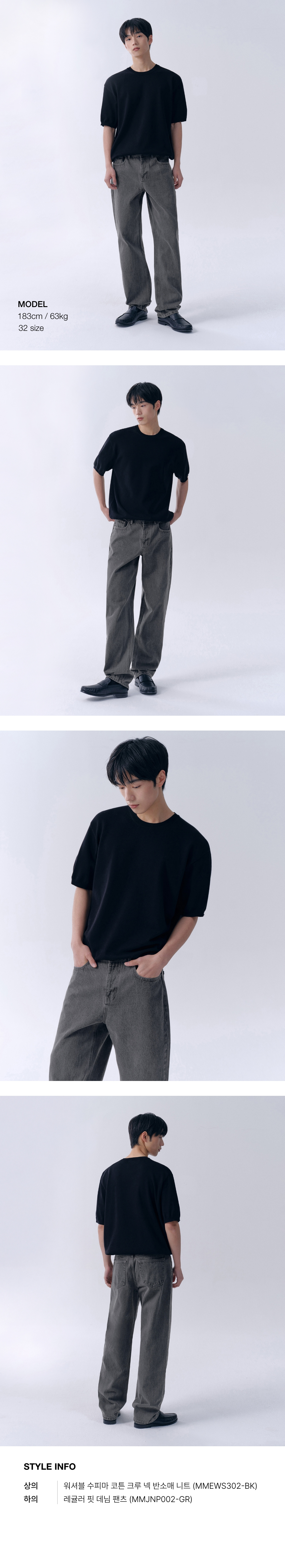 레귤러 핏 데님 팬츠 [워시드 블랙]