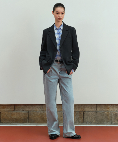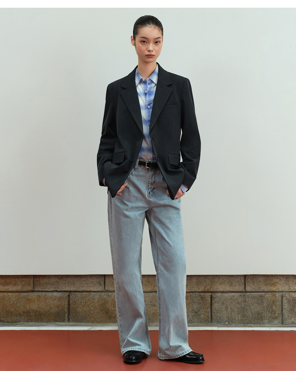 우먼즈 와이드 데님 팬츠 [그레이]