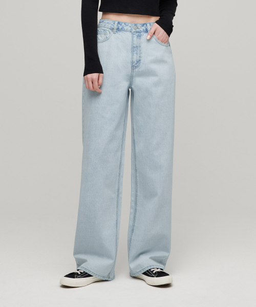우먼즈 와이드 데님 팬츠 [페일 블루]