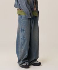 도밍고 워싱 와이드 데님 팬츠 - 워시드 블루