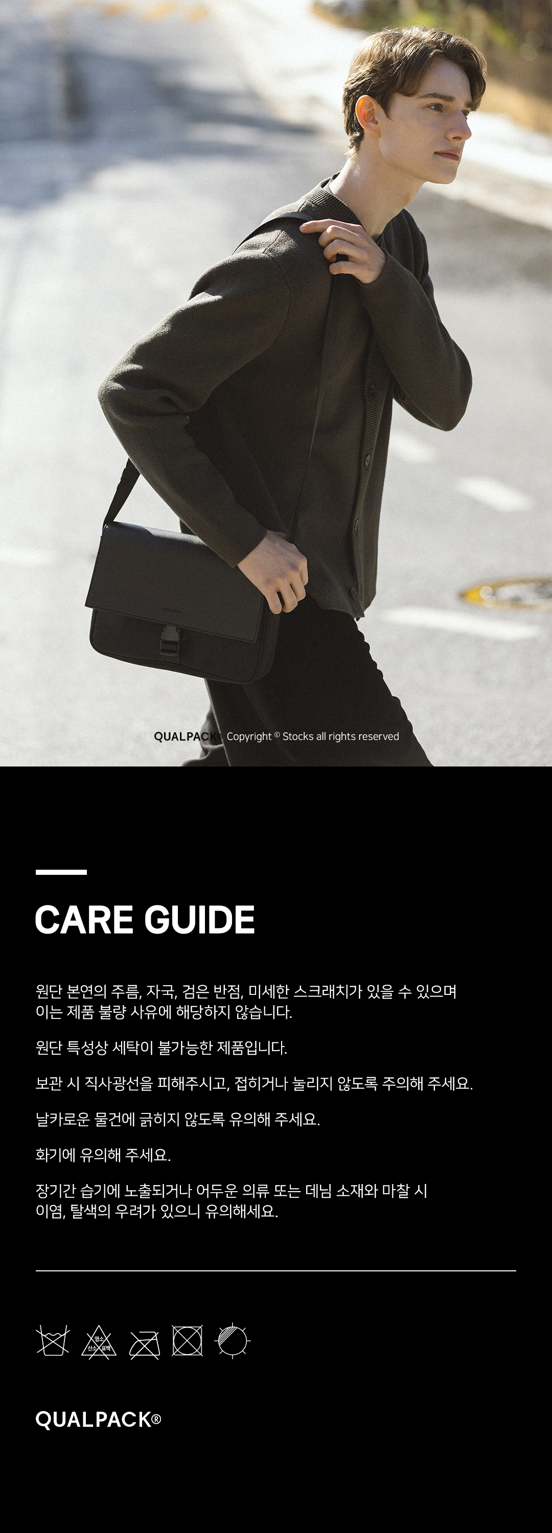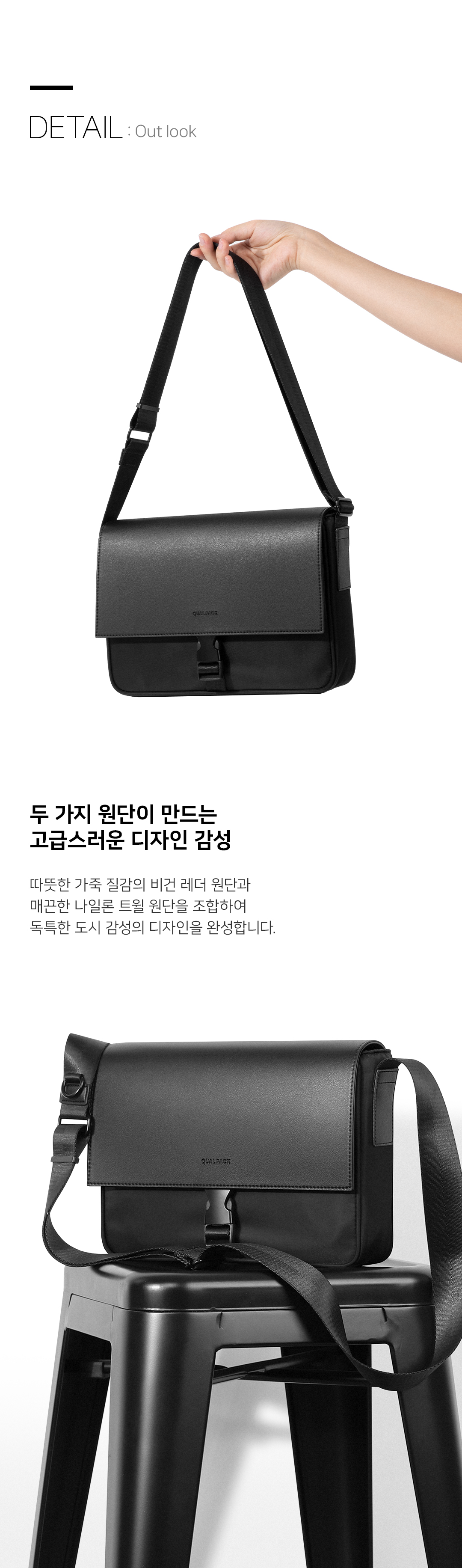 퀄팩(QUALPACK)은 특별한 순간보다 평범하고 익숙한 하루에 더 가까이 다가서며, 익숙함 속의 편안함과 실용성을 담아내는 데일리 백 브랜드입니다.
