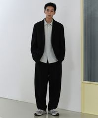 울 블렌드 트래디셔널 원 턱 테이퍼드 슬랙스 [블랙]
