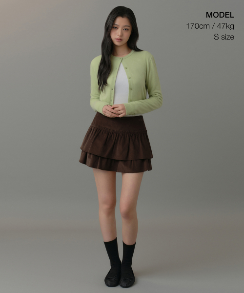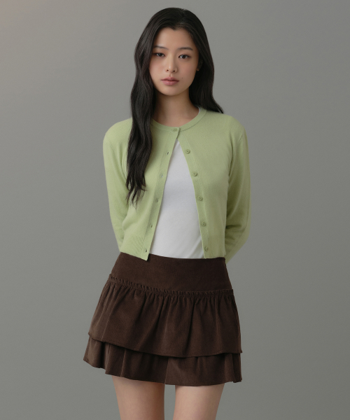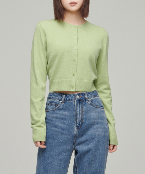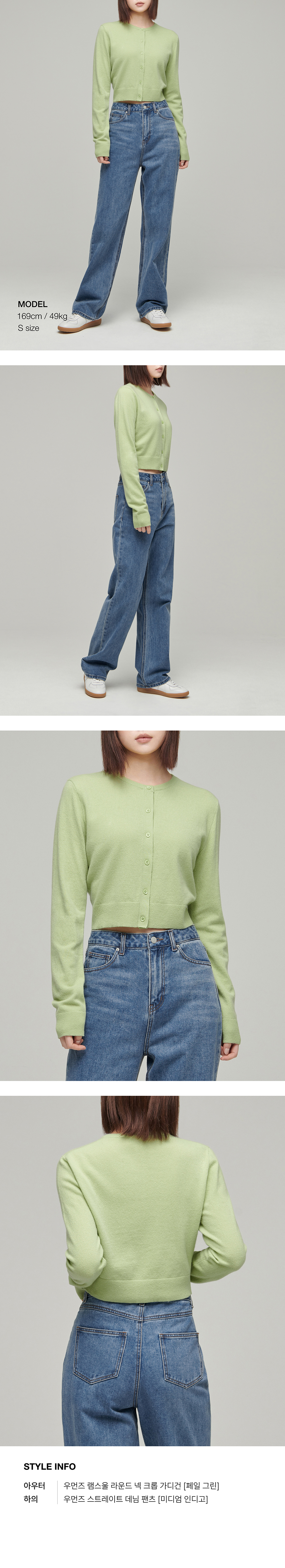 우먼즈 램스울 라운드 넥 크롭 가디건 [페일 그린]