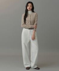 우먼즈 램스울 라운드 넥 크롭 가디건 [베이지]