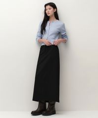 우먼즈 슬림 크롭 스퀘어 넥 버튼 티셔츠 [블랙]