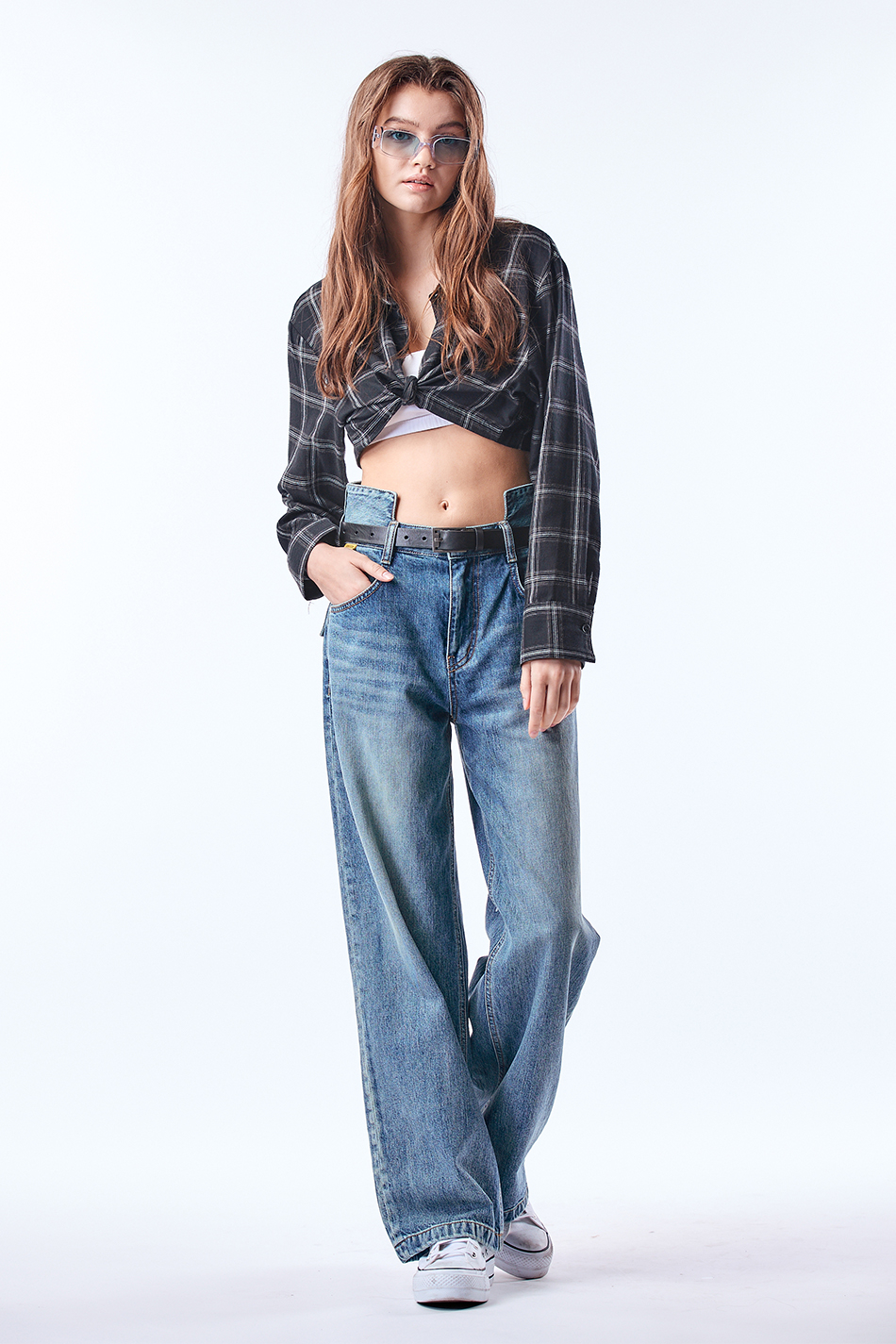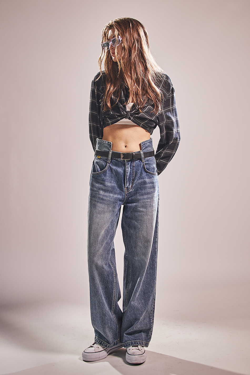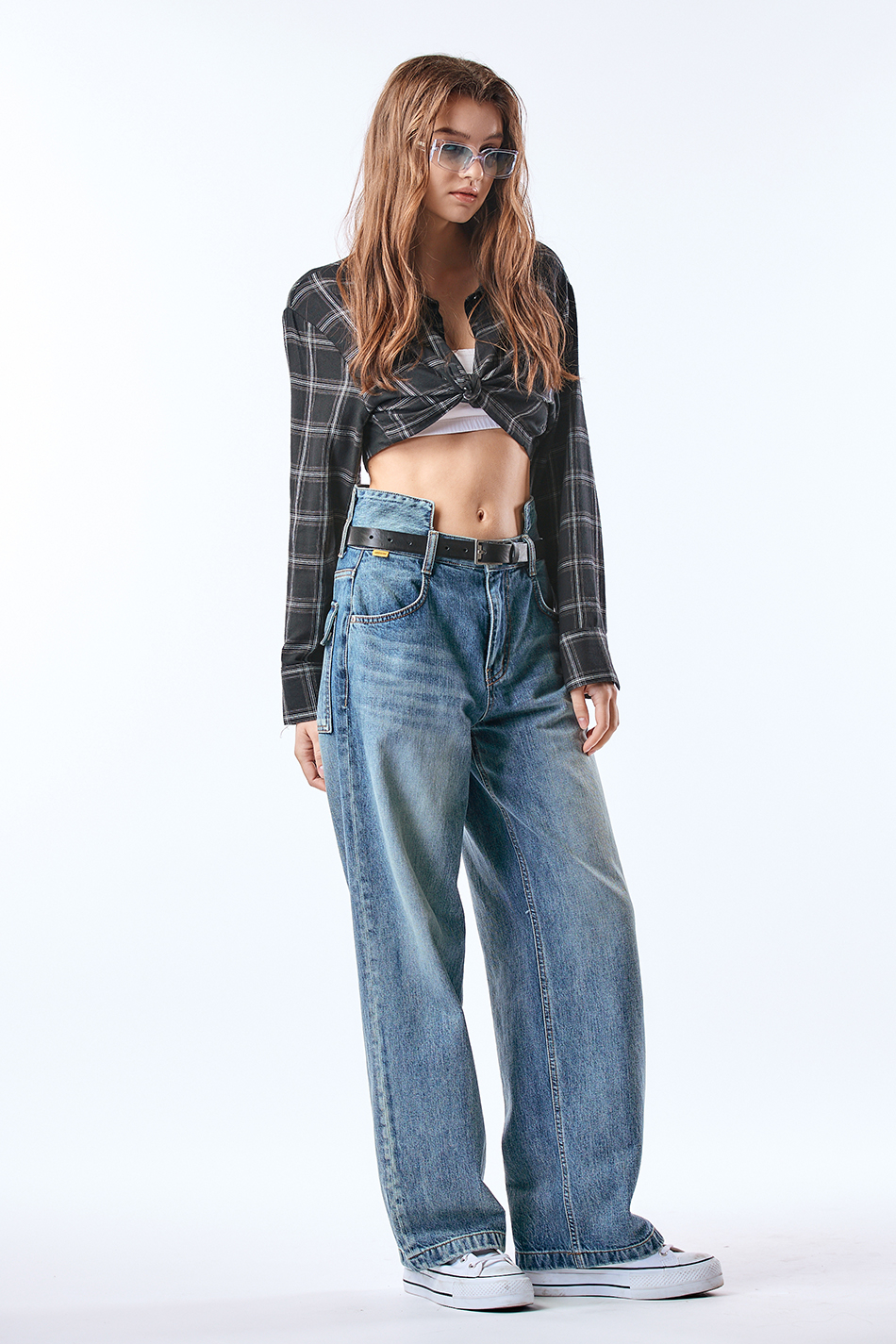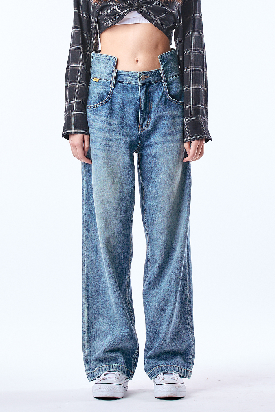 스퀘어 하이 웨이스트 와이드 팬츠