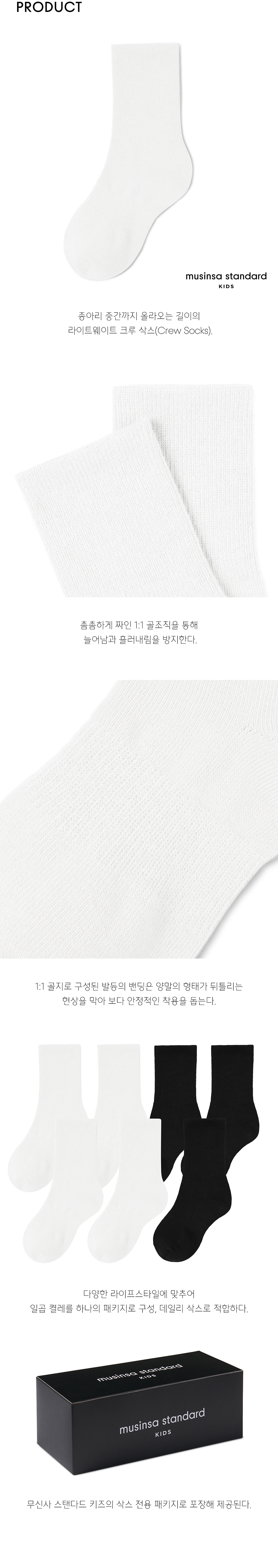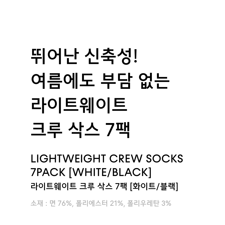 라이트웨이트 크루 삭스 7팩 [화이트/블랙]