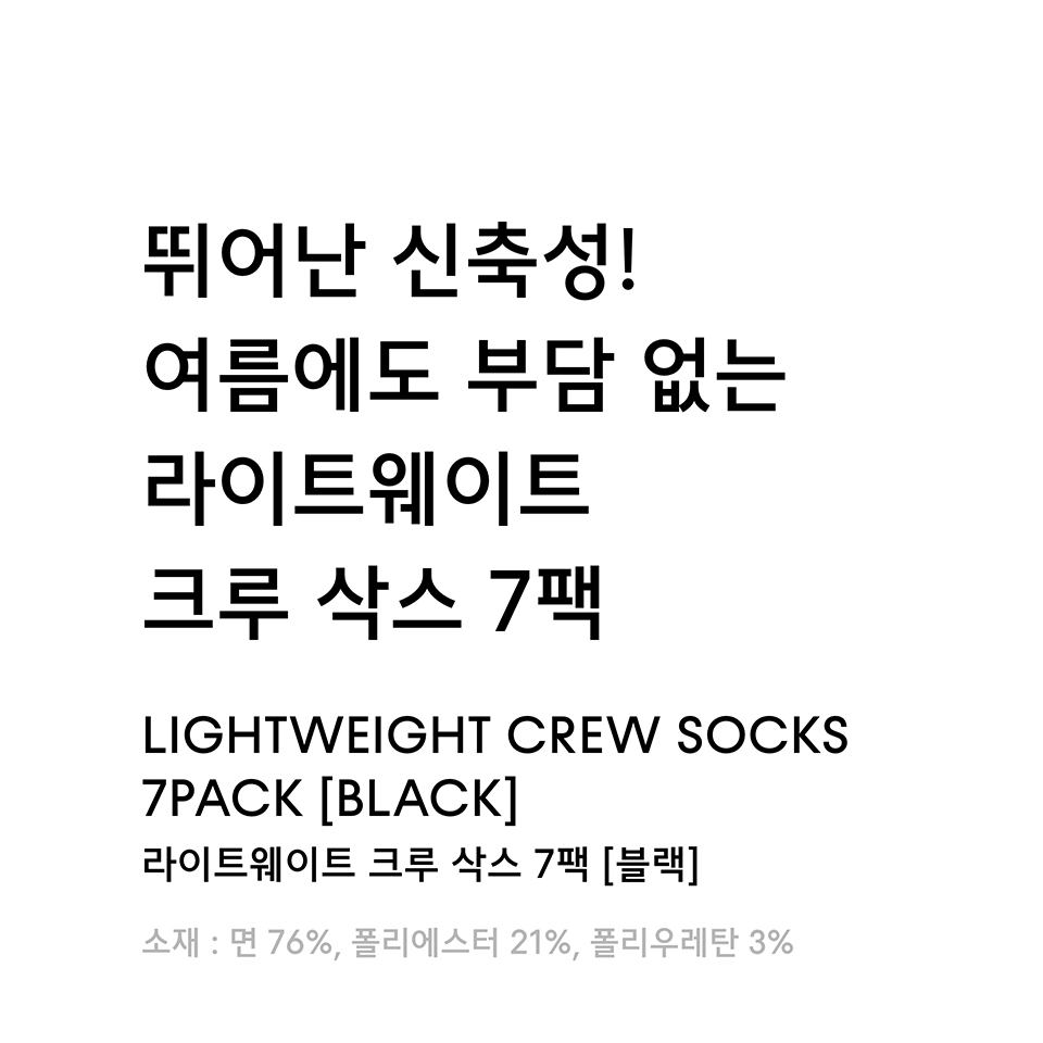 라이트웨이트 크루 삭스 7팩 [블랙]