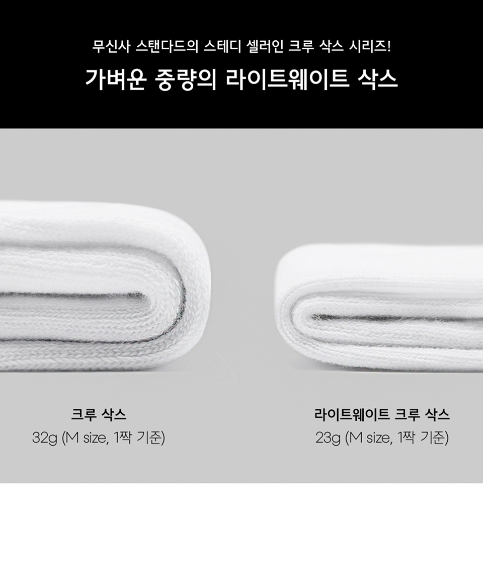 라이트웨이트 크루 삭스 7팩 [화이트/블랙]