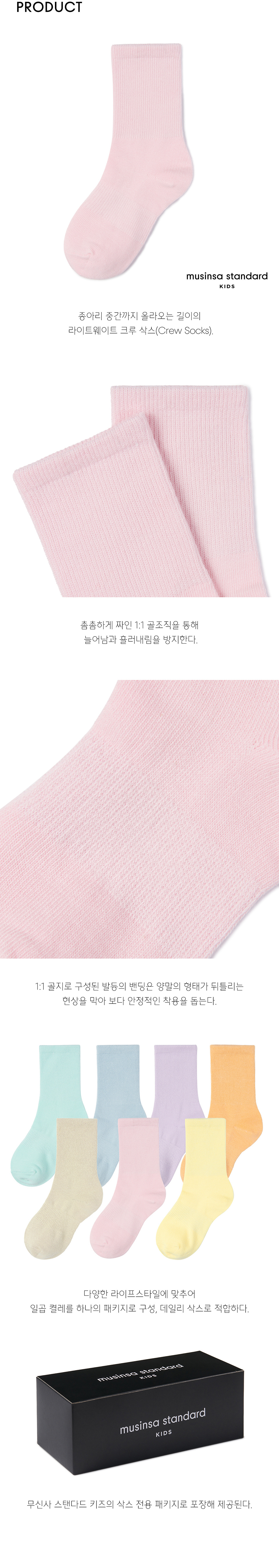 라이트웨이트 크루 삭스 7팩 [파스텔]