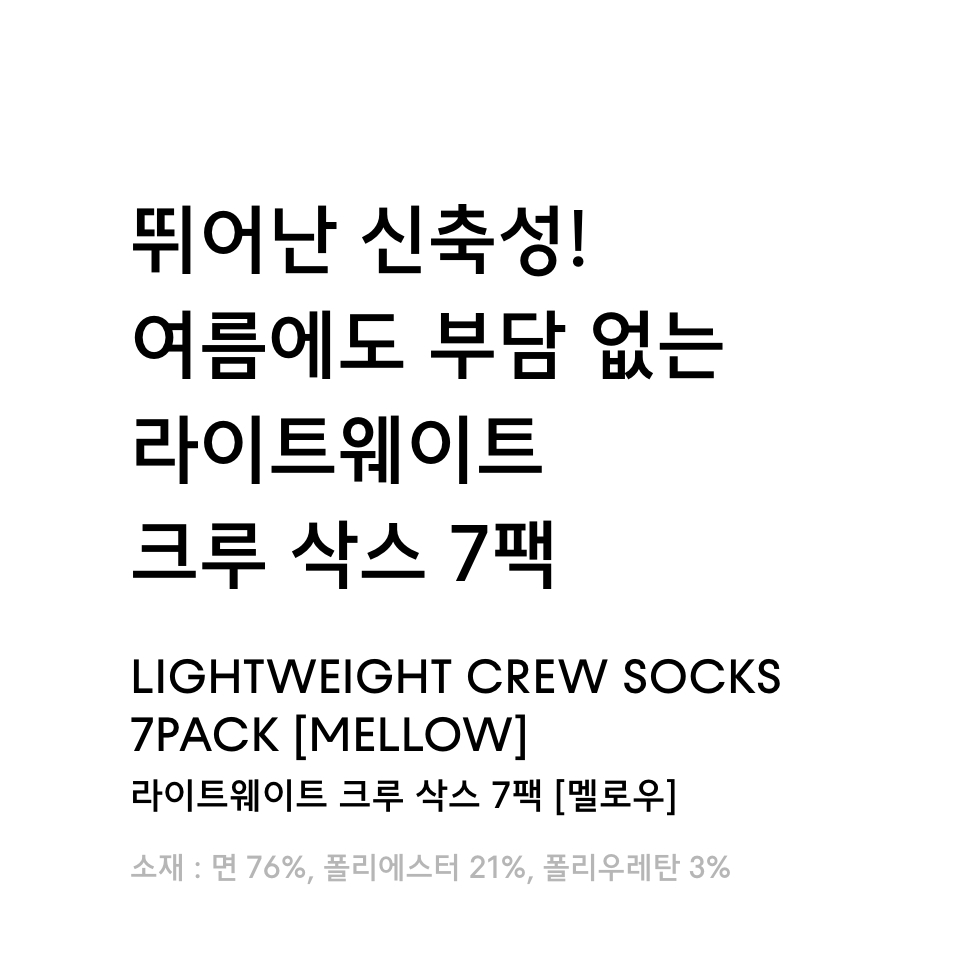라이트웨이트 크루 삭스 7팩 [멜로우]