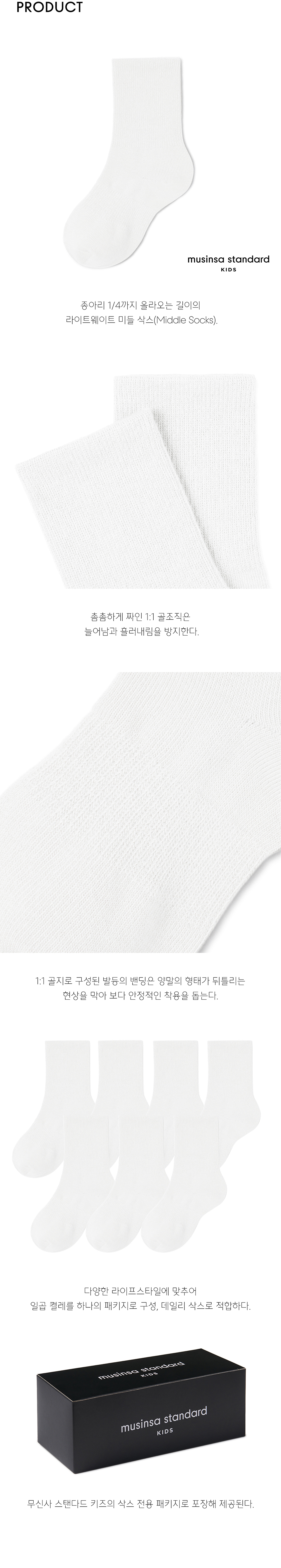 라이트웨이트 미들 삭스 7팩 [화이트]