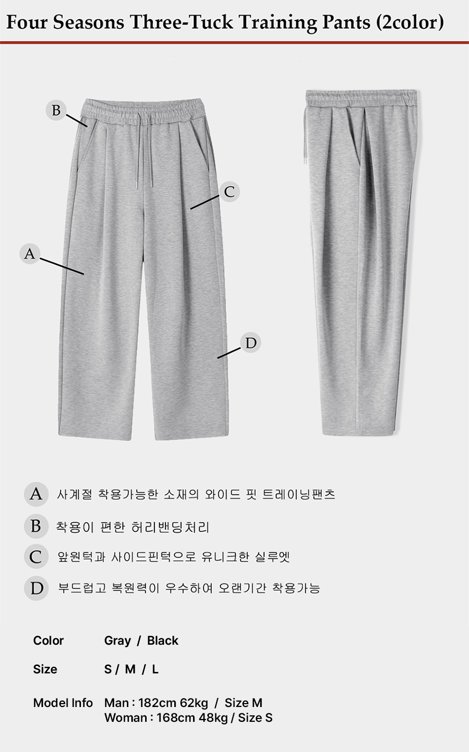 사계절 쓰리턱 트레이닝팬츠 (2color) (기모선택)