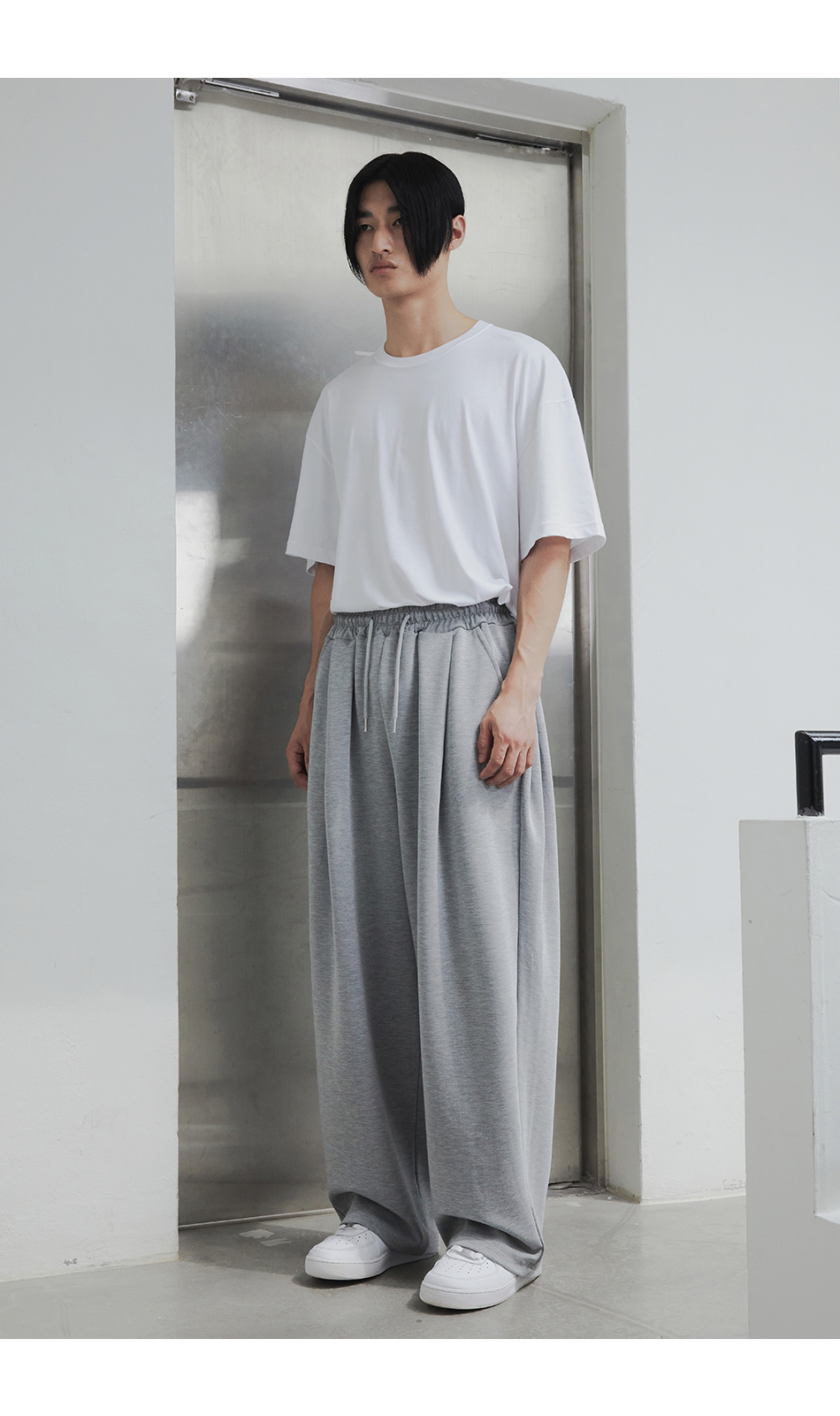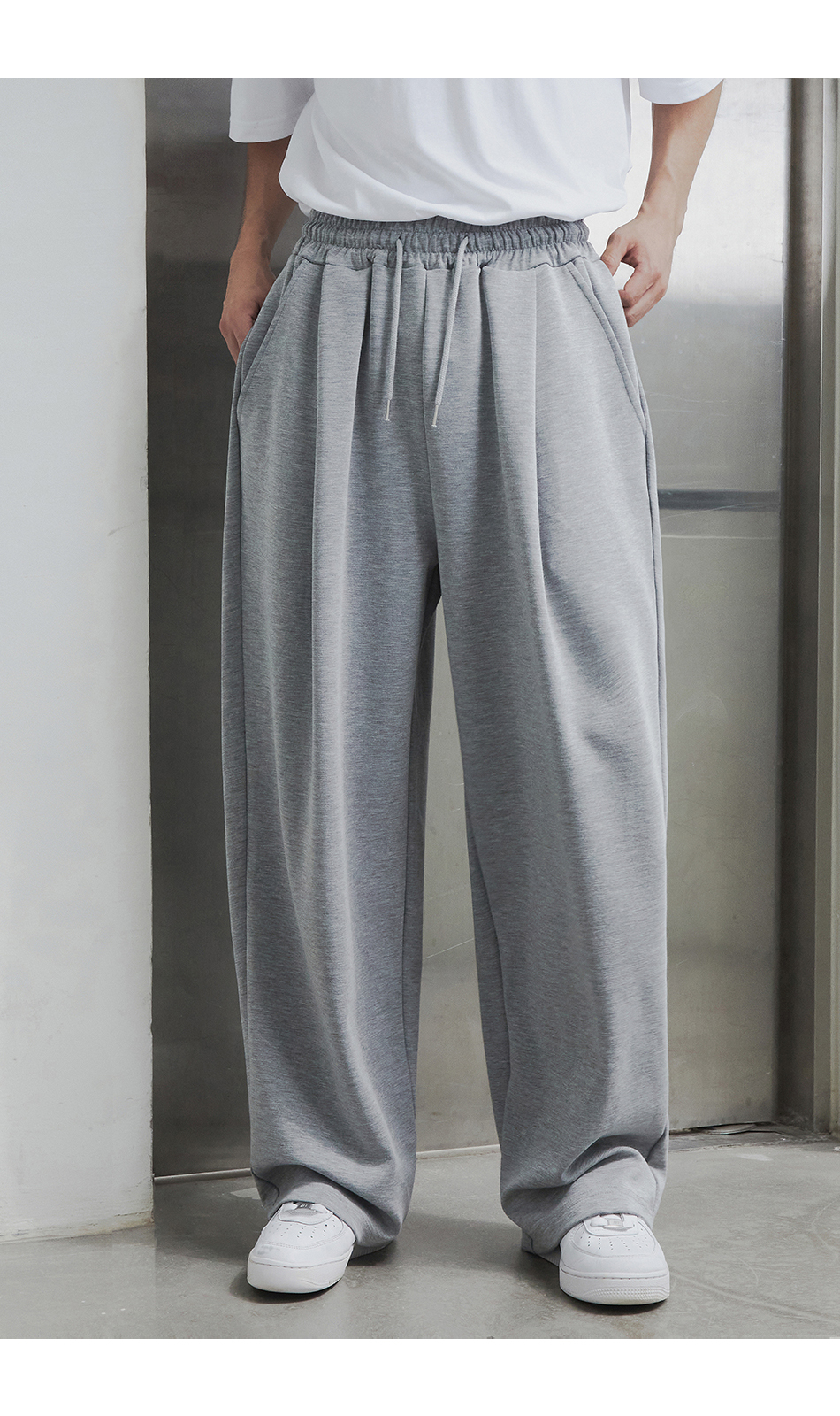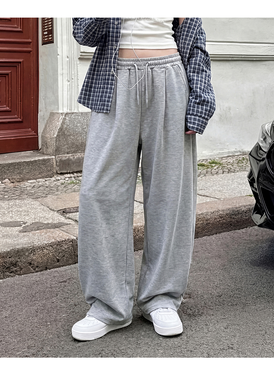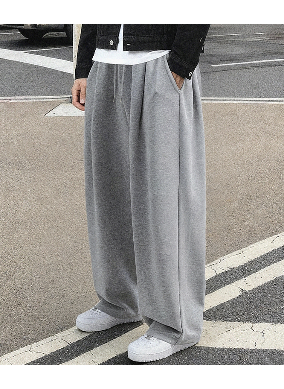 [여름 or 기모 or 사계절 원단 선택] 원턱 와이드 스웨트팬츠 그레이