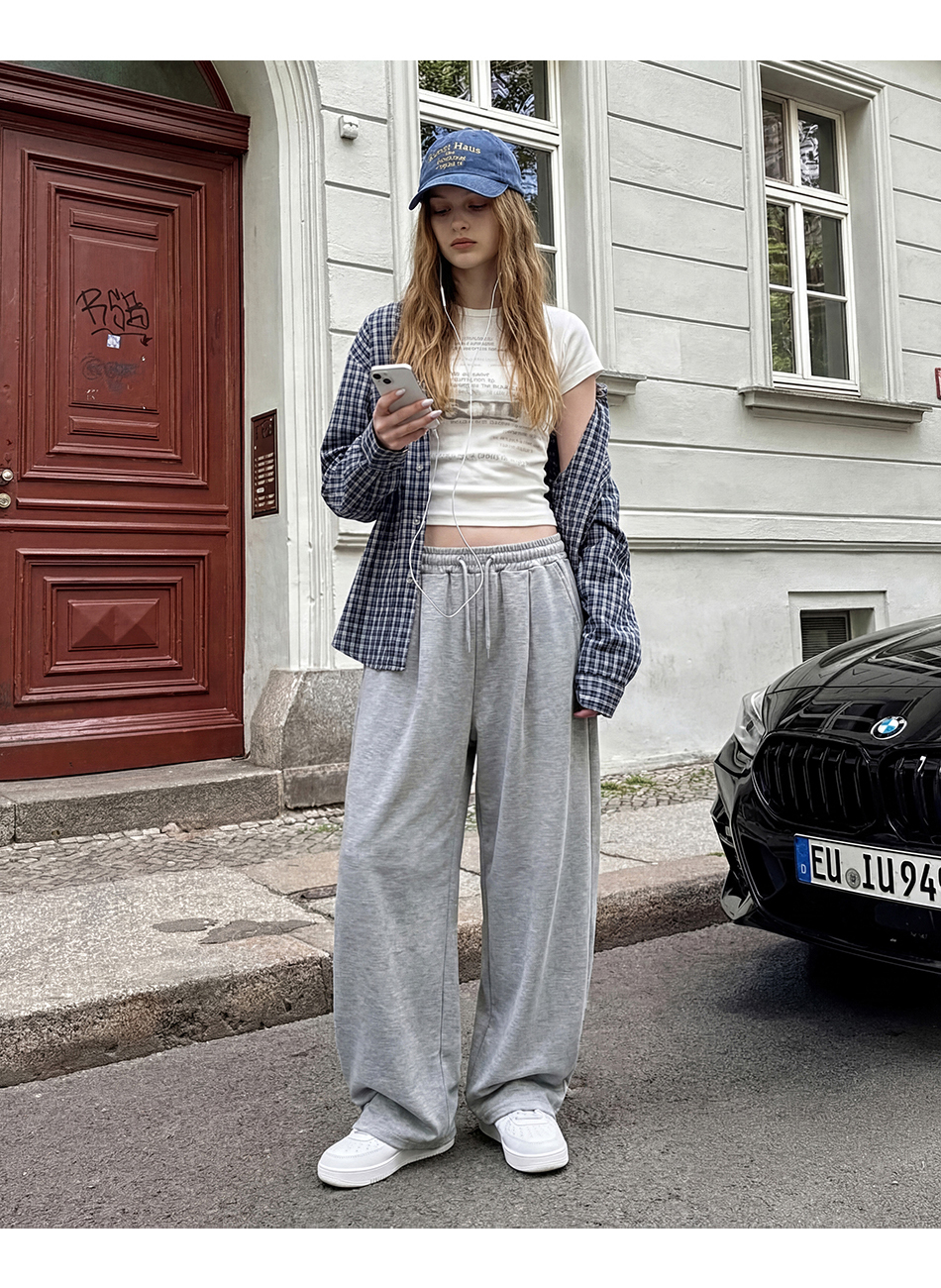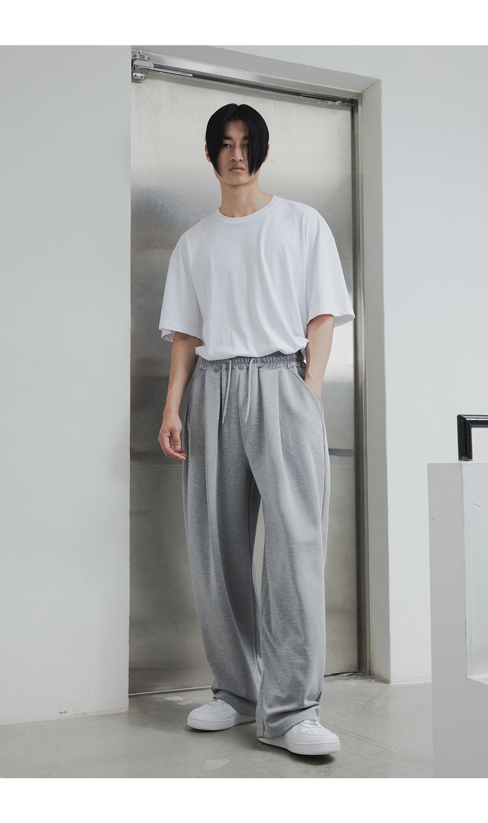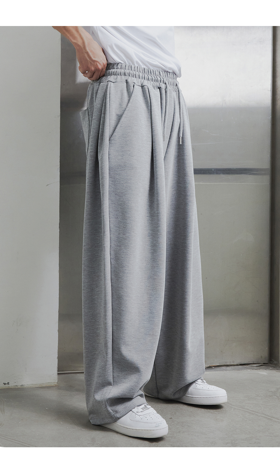 [여름 or 기모 or 사계절 원단 선택] 원턱 와이드 스웨트팬츠 그레이