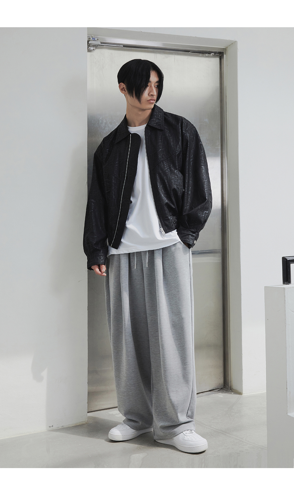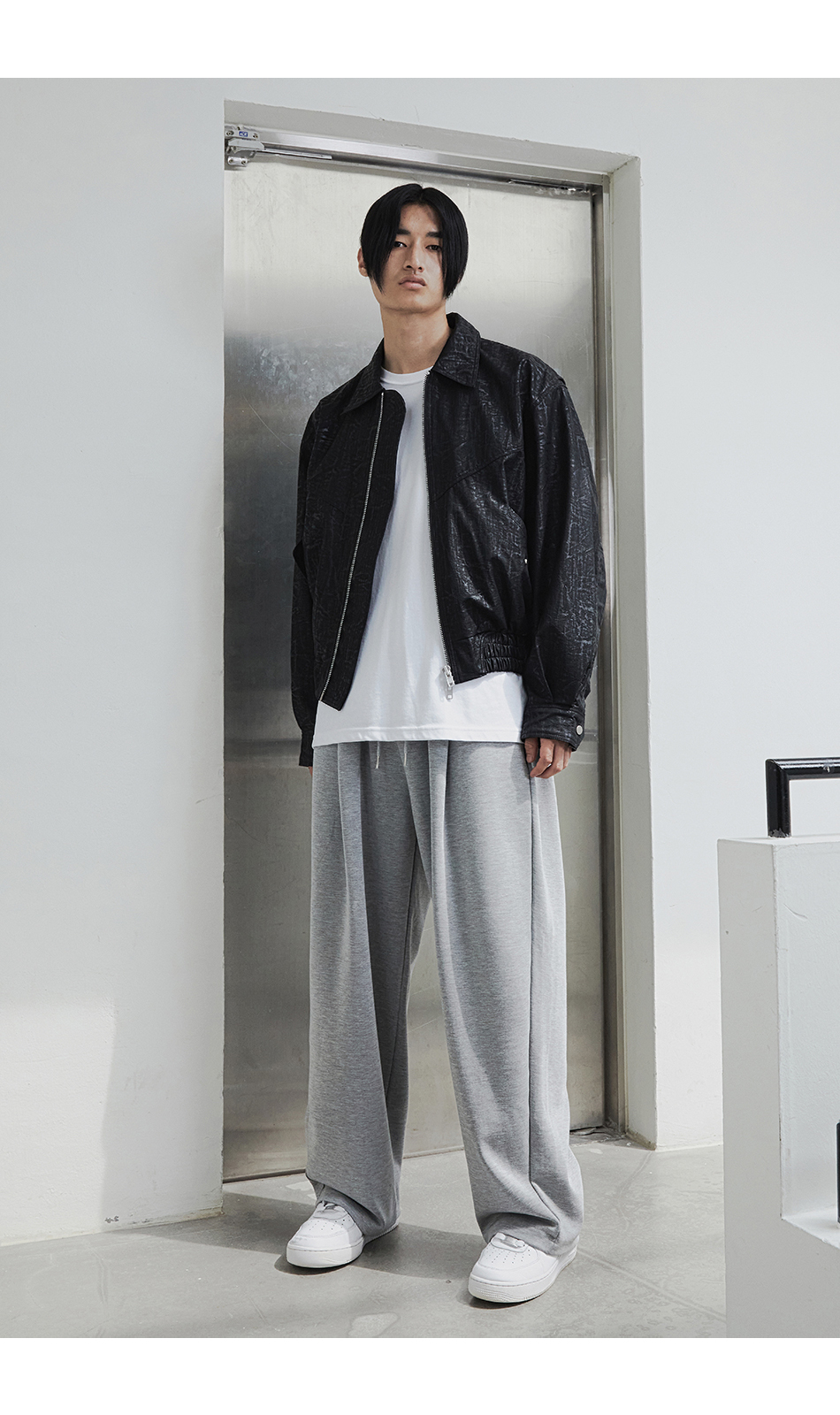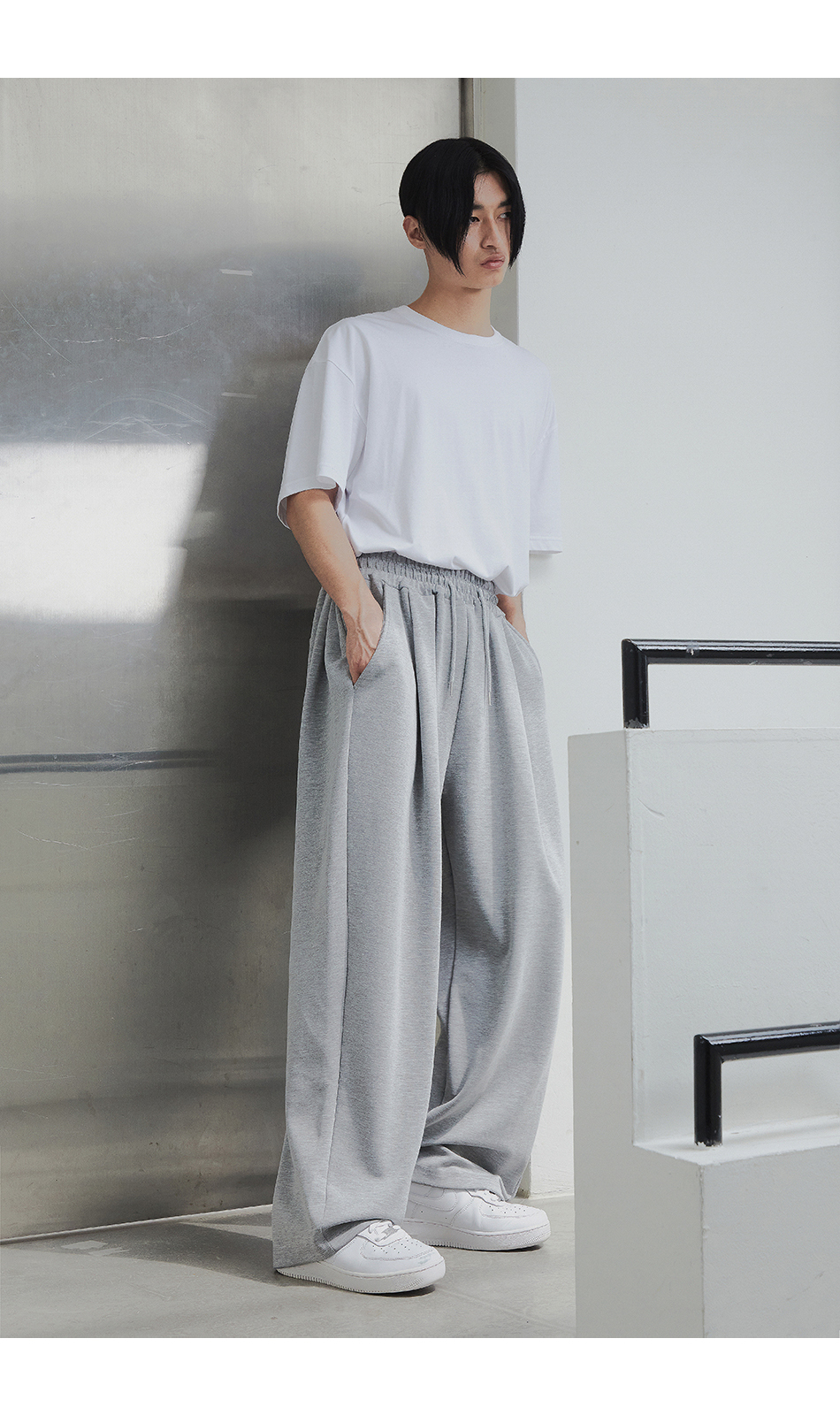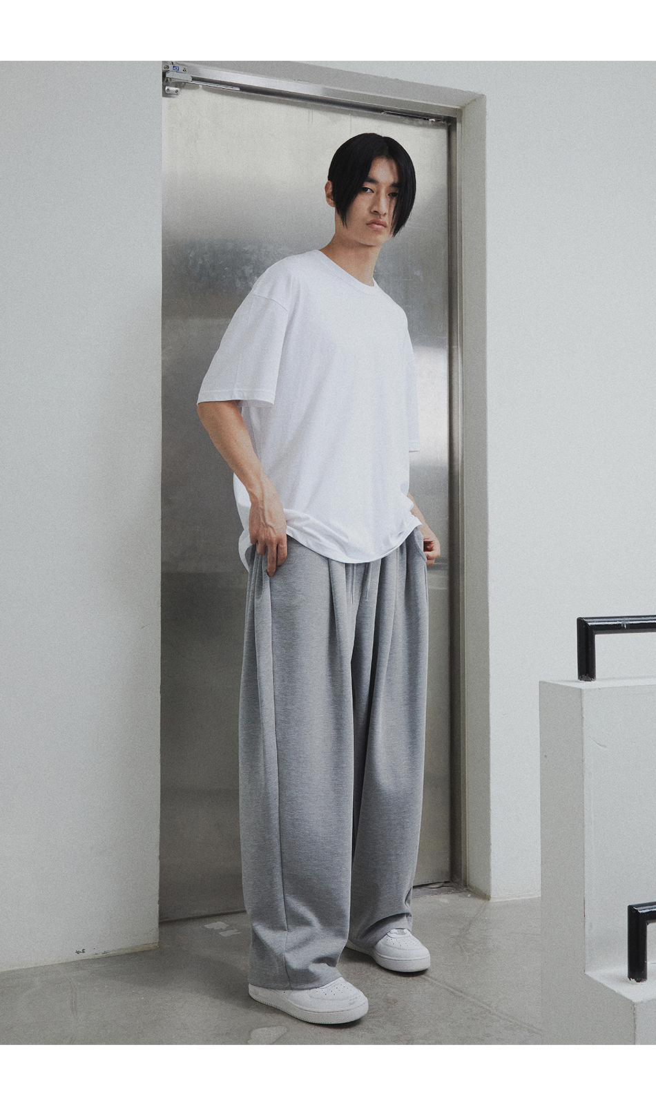 [여름 or 기모 or 사계절 원단 선택] 원턱 와이드 스웨트팬츠 그레이