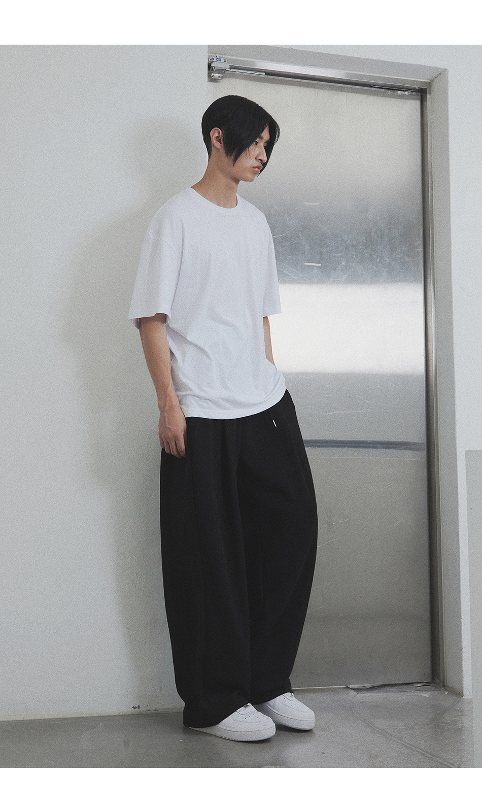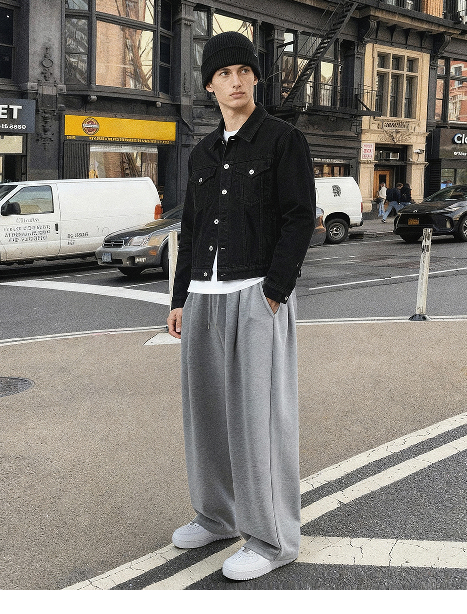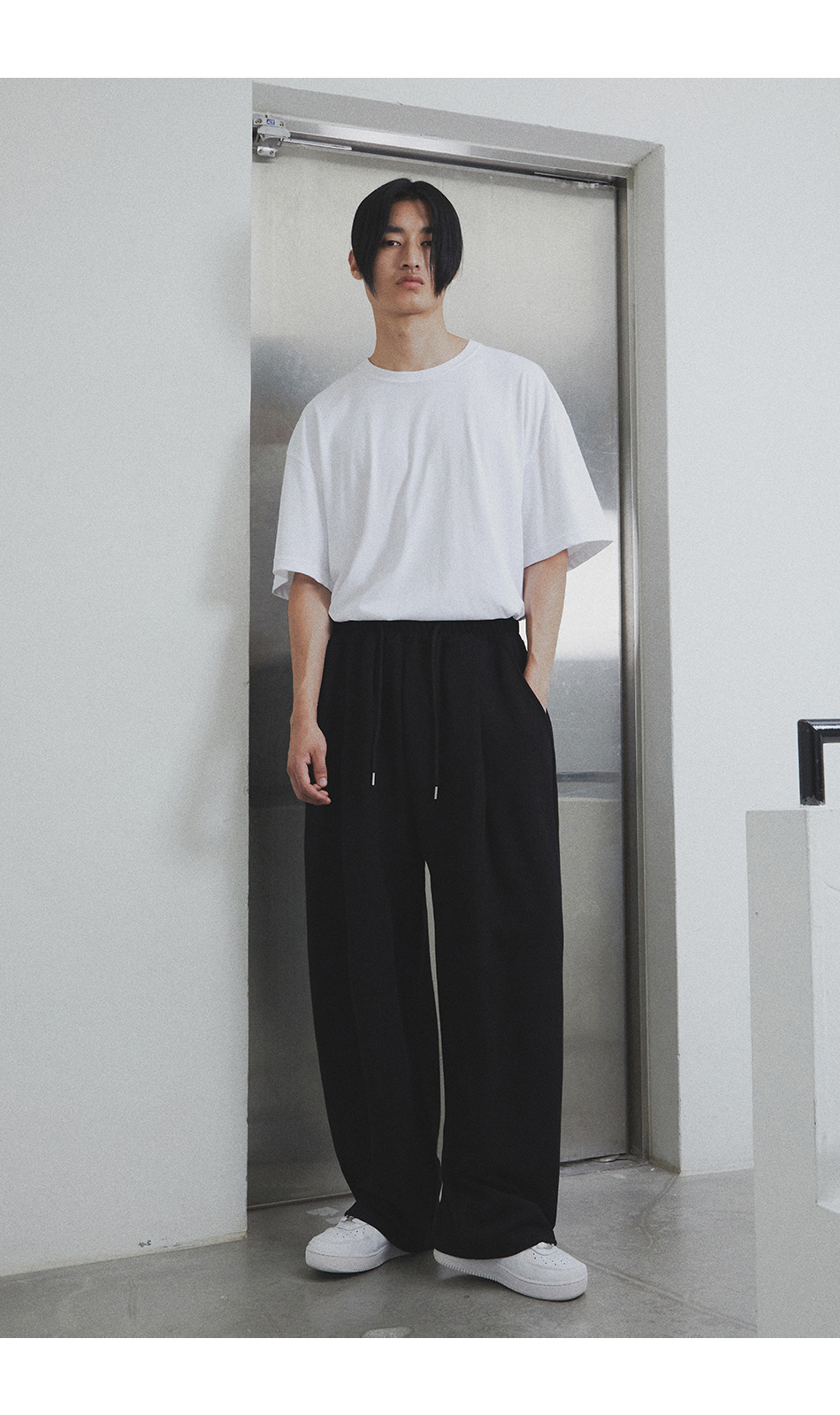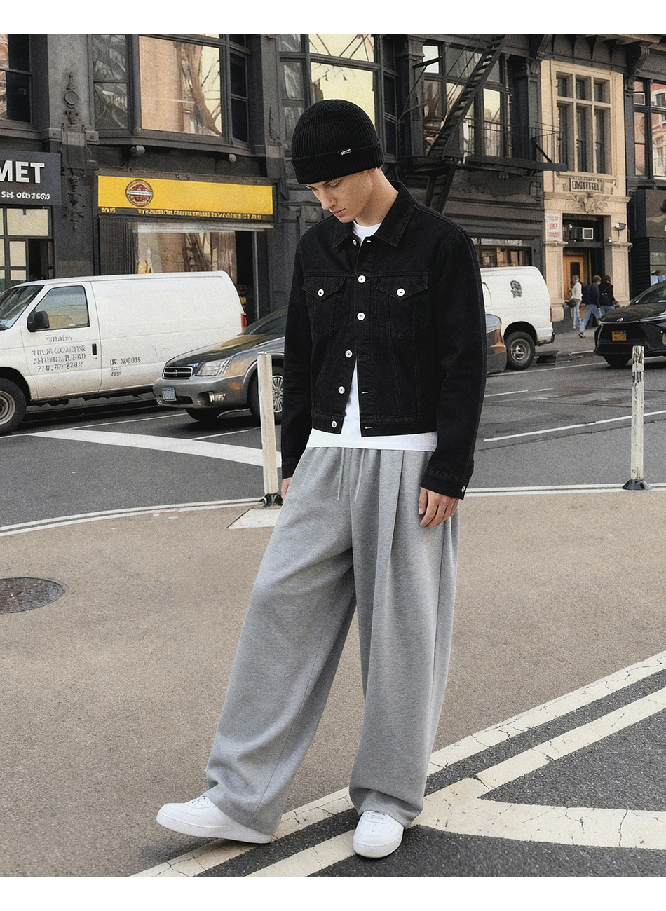 [여름 or 기모 or 사계절 원단 선택] 원턱 와이드 스웨트팬츠 블랙