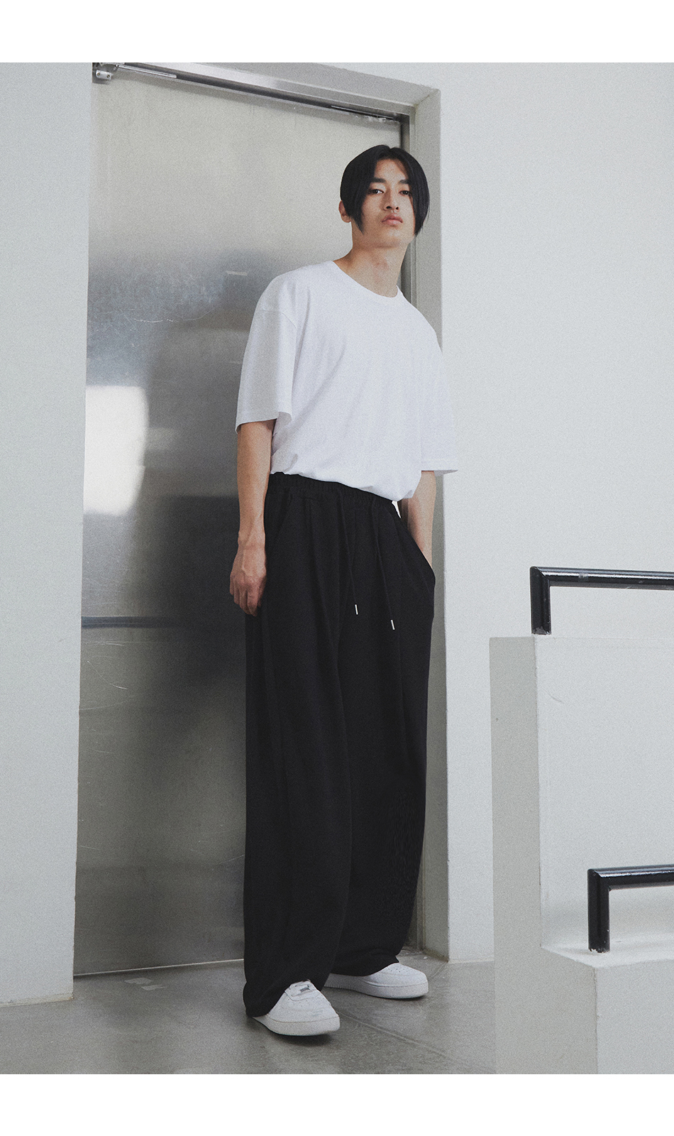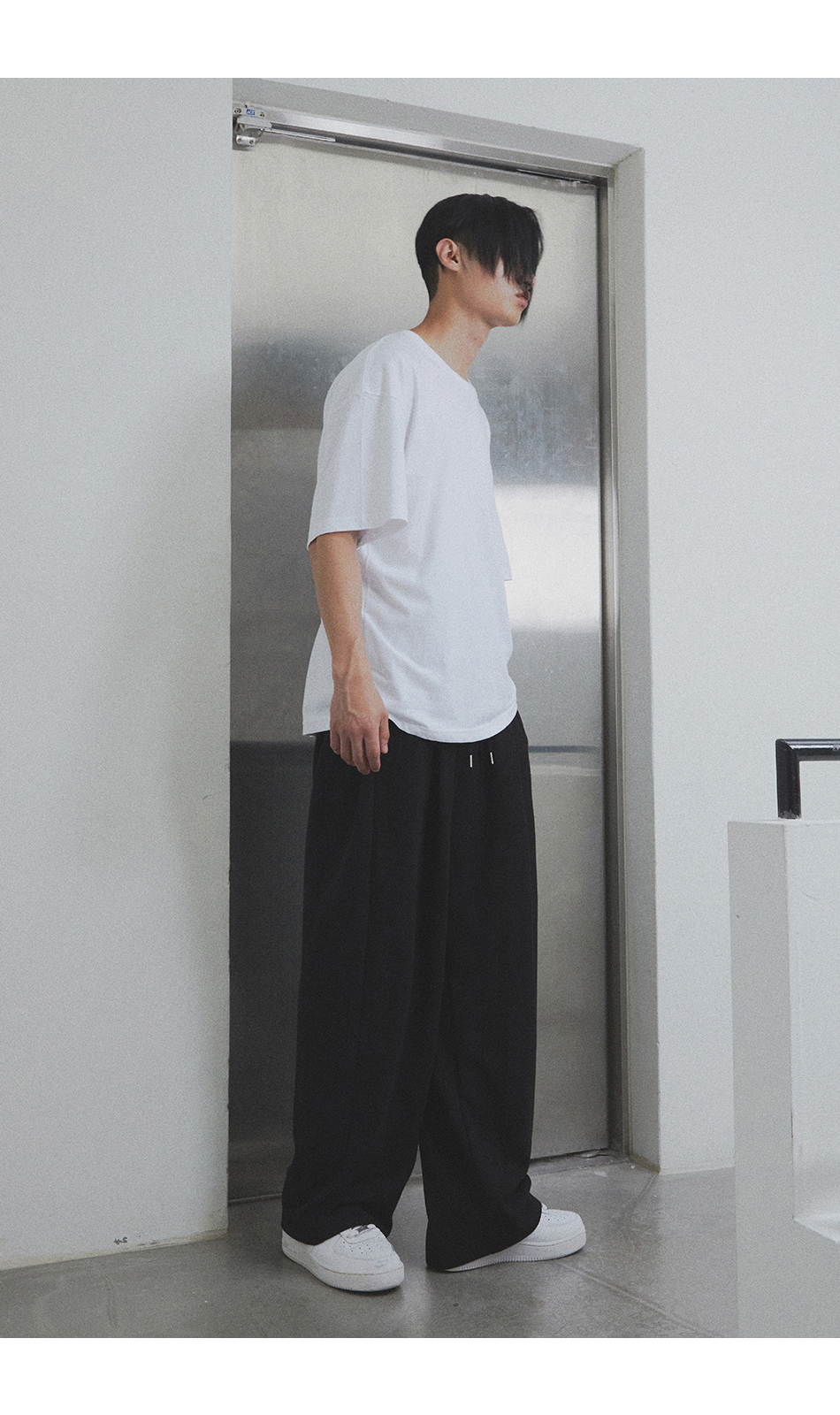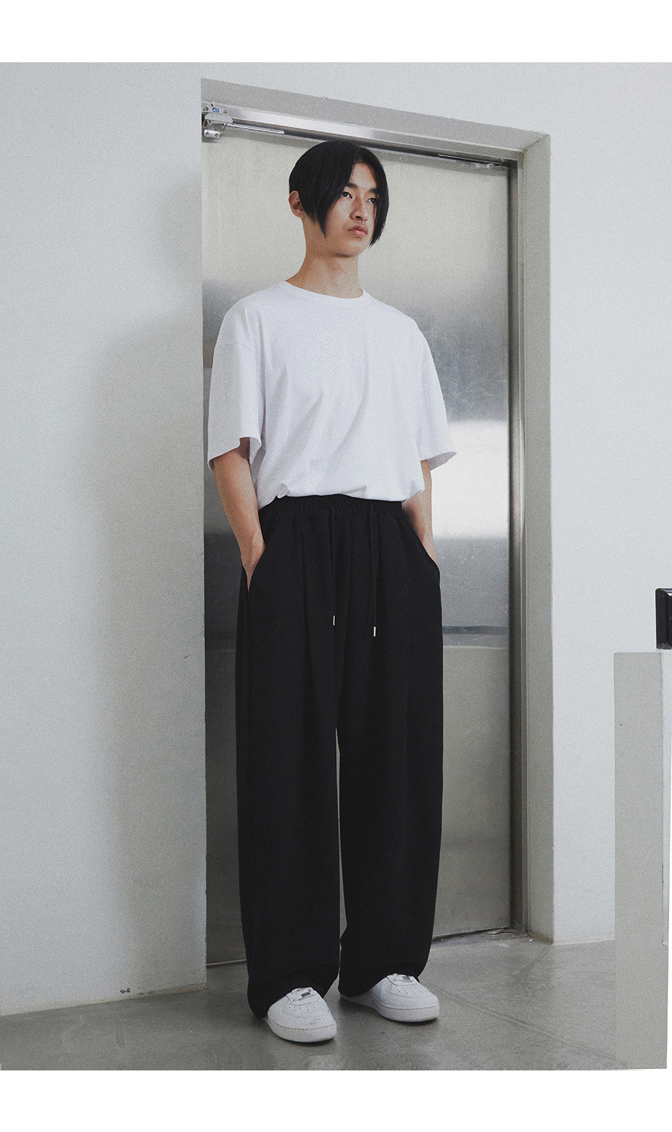 [여름 or 기모 or 사계절 원단 선택] 원턱 와이드 스웨트팬츠 블랙