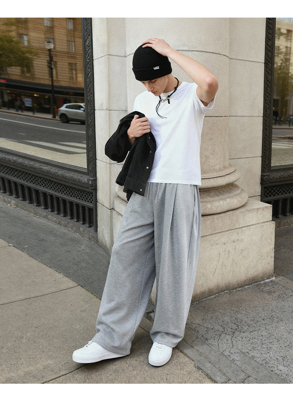 Deep One Tuck Sweat Pants [Grey]