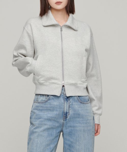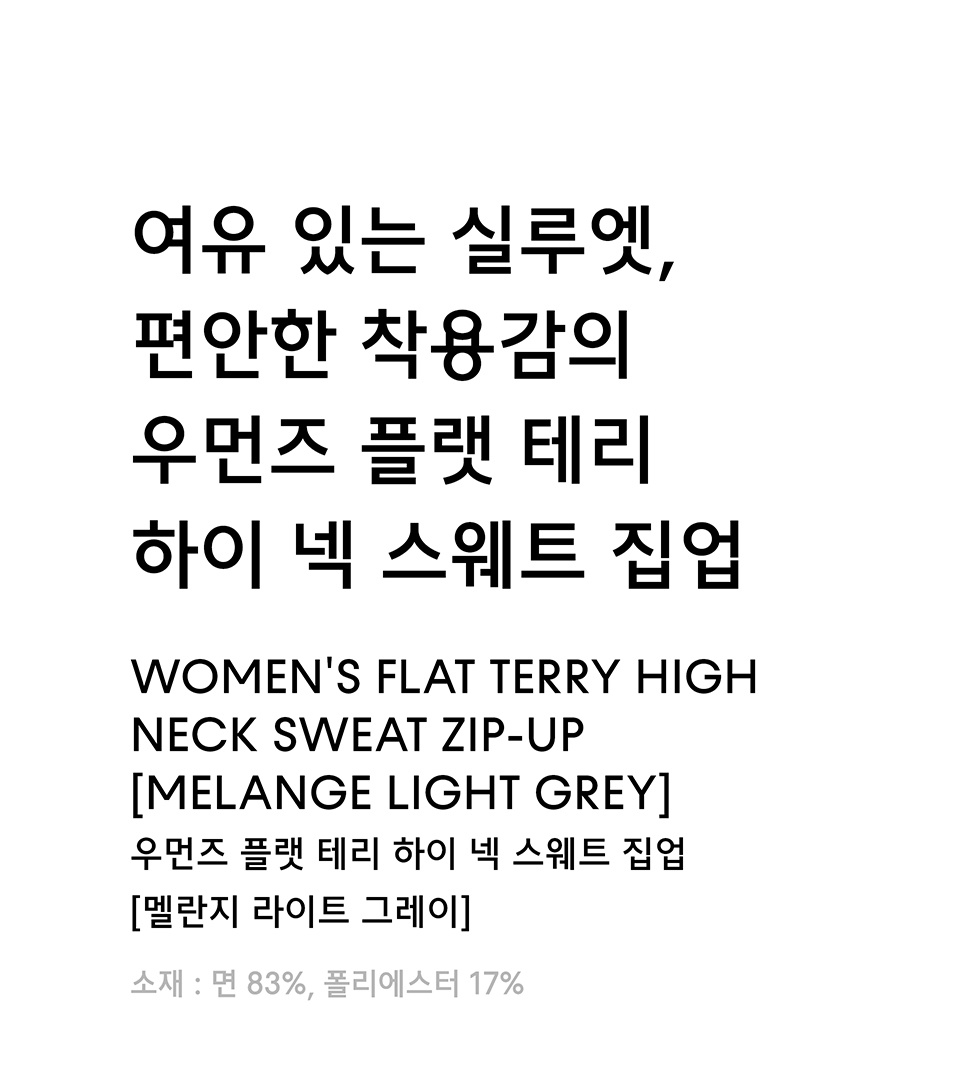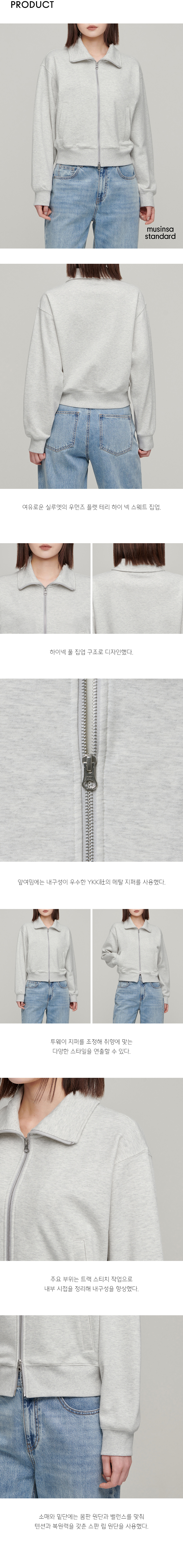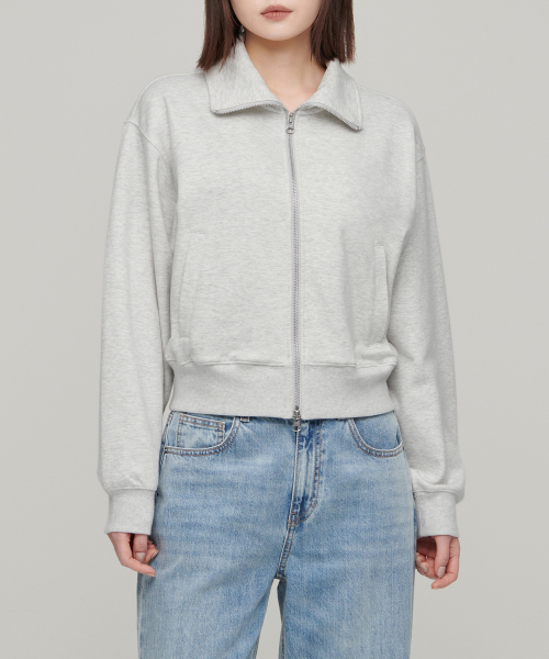 우먼즈 플랫 테리 하이넥 스웨트 집업 [멜란지 라이트 그레이]
