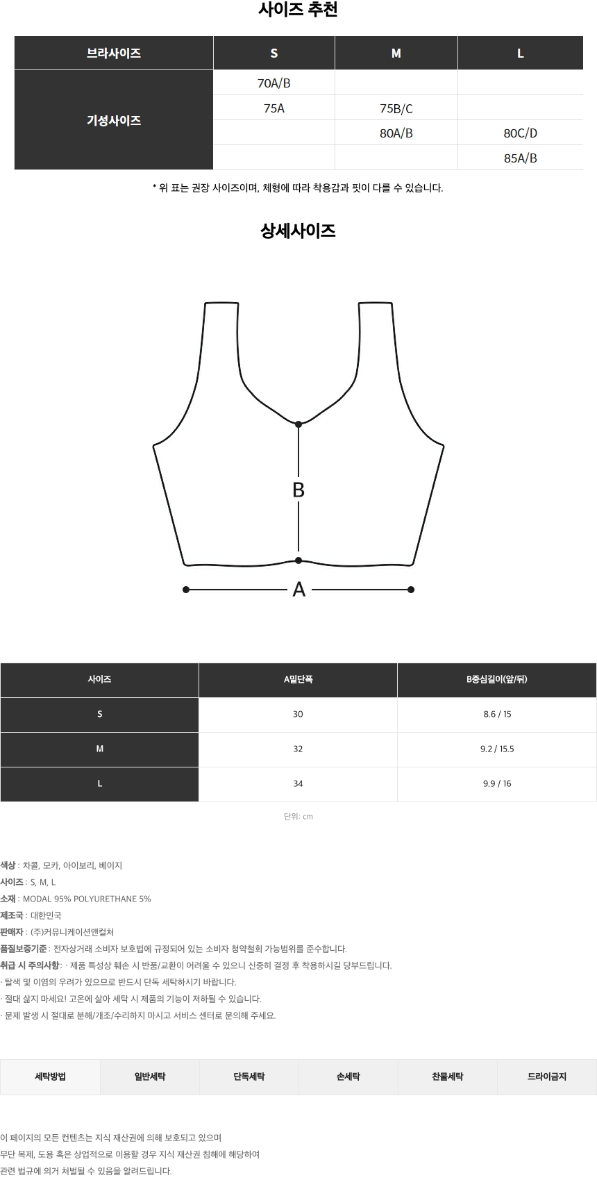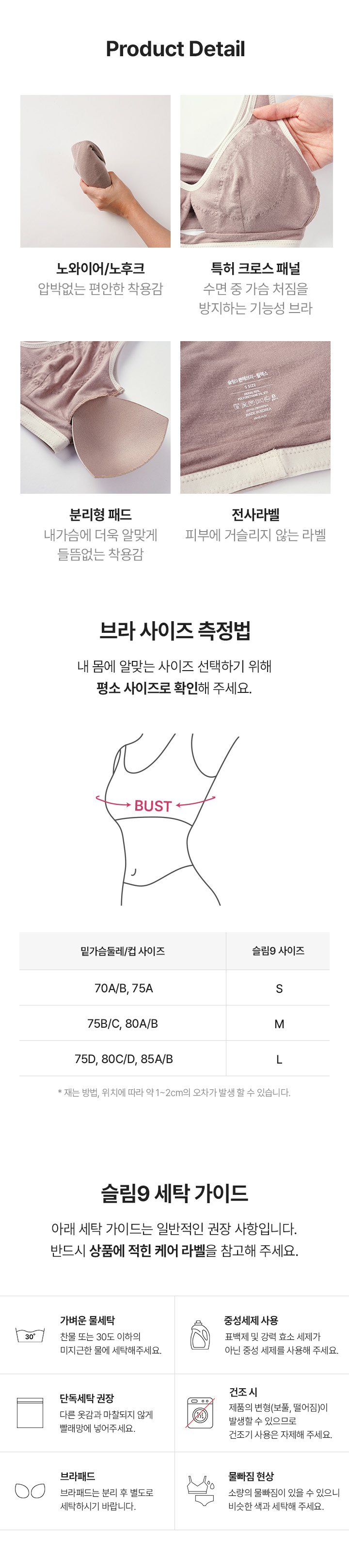 노와이어 브라렛 모달원단 리프팅 릴렉스 수면브라