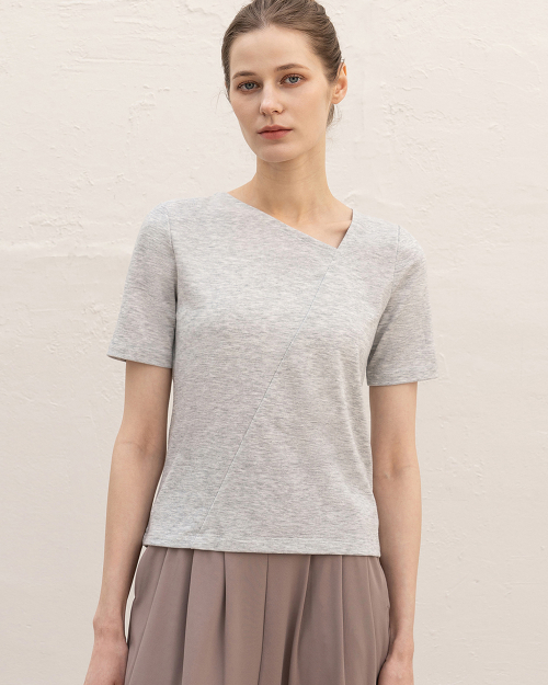 (FM40522)비대칭 넥 숏 슬리브_그레이멜란지