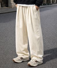 컬러풀 코듀로이 스트링 와이드 팬츠 크림